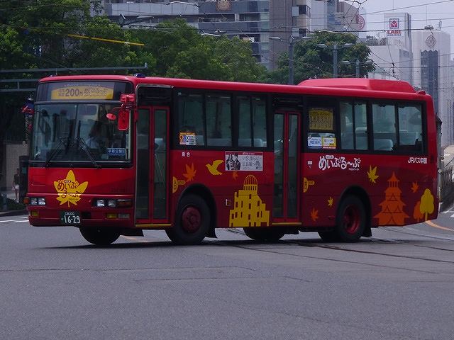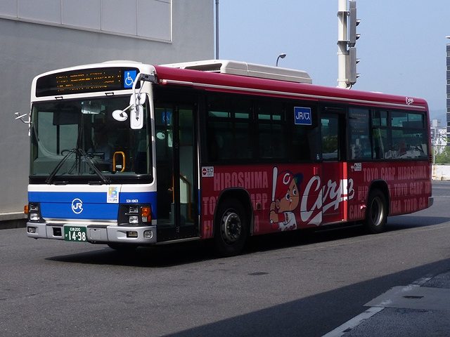 長々続けていた8月に広島市内へ出かけた際に記録したバス画像のよせ集め「広島市内で見たバス2016」シリーズも、ようやく最終回となります。今回は記録出来た中国ジェイアールバスのほか、広島バスセンターに乗り入れている事業者の都市間高速車など、これまでの括りで並べられなかった画像をまとめていきます。 <中国ジェイアールバス> 社番:531-1963.LKG-LV234N2(11年車)※1。 まずは中国ジェイアールバスの一般乗合車から、現在一般乗合車の主力的存在となっている、いすゞLVワンステップ車。画像の車両は広島東洋カープのラッピング車となっていました。 社番:537-4952.U-HU2MPAA改(94年車)※1。 中扉4枚折戸で側面窓が全引違い仕様のため、生え抜き車両に見えなくもない日野HU長尺車は南海バスからの移籍車。側面行先表示を中扉後に移設改造しています。 中国ジェイアールバスは90年代後半から00年代にかけて一般乗合車の代替を移籍車で行い、神奈川中央交通や相模鉄道など神奈川県内事業者から多数の移籍車を導入しました。 社番:334-6951.KC-MK619J(96年車)※1。 中国ジェイアールバスは広島市中心市街地の観光スポットをめぐる循環バス「ひろしま観光ループバス めいぷるーぷ」も運行中。広島駅新幹線口を起点にオレンジルート・グリーンルートという若干経由地が異なる2ルートを、赤色の目立つラッピングを纏った中型車で運行しています。まずは中扉折戸+側面全引違窓という往年の中国ジェイアールバスらしい仕様の三菱ふそうMKツーステップ車。 社番:331-5962. こちらは「めいぷるーぷ」専用車として新車導入した、いすゞLRワンステップ車。 社番:641-4911.KL-LV781R2(04年車)※1。 いすゞガーラの都市間高速車。岡山ナンバーの車両で、この日は広島市中心部と岡山市中心部を結ぶ「サンサンライナー」の運用に入っていました。 <中国バス> 社番:I0003.KC-LV781R1(00年車)※2。 両備グループ傘下となった中国バスの都市間高速車を2枚ほど。まずは旧中国バス時代に導入したいすゞガーラ。福山ナンバーの車両で、この日は尾道を経由して広島バスセンターと因島を結ぶ「フラワーライナー」の運用に入っていました。 社番:G1408. 両備グループ傘下となり、「Chu Bus」のアルファベットロゴが両備タイプに変わりました。現代ユニバースは2010年以降導入が続いています。 <いわくにバス> 山口200か547.PKG-RU1ESAA改(06年車)※3。 続いては広島バスセンターと山口県を結ぶ都市間高速バス運行事業者から、いわくにバスの日野セレガ。いわくにバスは岩国市交通局の受け皿として誕生した事業者で、防長交通と共同運行の「周防大橋・岩国~広島線」のうち、岩国市内と広島バスセンターを結ぶ便を担当しています。運用は貸切車からの転用車で運行しています。古参車が目につくなか、ひときわ目立つ存在となっているのが画像の日野セレガ。中央部にリフトを装備しており、貸切車のフラッグシップ的存在でしたが、現在は高速車として運行しています。 <防長交通> 山口200か720. こちらは防長交通の運用車両。近鉄グループということで、近鉄バスからの移籍車は見たままそのままの状態で運行しています。直結冷房+3本トランク仕様な画像の日野セレガFDは関西国際空港へのリムジンバスだった車両。関西国際空港へのリムジンバスは開港当初いわゆる「KATE」カラーを各社共通の塗装デザインとしていました。塗装は各社共通でも、全引違の側面窓が近鉄という感じです。記録出来た防長交通の車両はこの1台のみ、もちろん自社導入の高速車も在籍しています。 <石見交通> 社番:198. 島根県西部エリアを中心に路線網を展開する石見交通。益田・浜田・大田からそれぞれ広島へ結ぶ山陰山陽連絡バスを運行しています。まずはスタンダードデッカーな三菱ふそうMS。 社番:612. こちらはモデルチェンジしたMS。 社番:743. 近年はいすゞ車の導入も多く、一般乗合車だけでなく高速車も登場しています。 <一畑バス> 社番:8353.KL-LV774R2(05年車)※4。 島根県東部エリアは一畑バスのテリトリー。松江・出雲それぞれから広島への都市間高速バスを運行しています。画像のいすゞガーラは出雲への「みこと号」の運用に入っていました。 なお、型式・年式は ※1)「中国ジェイアールバス 所有車両一覧表」『バスマガジン 65号』(2014),講談社ビーシー/講談社 ※2)「中国バス 在籍車両一覧」『バスラマインターナショナル 143号』(2014),ぽると出版 ※3)「いわくにバス 保有車両一覧表」『バスライフ 1号』(2015),笠倉出版社 ※4)「一畑バスグループ 在籍車両一覧」『バスラマインターナショナル 116号』(2009),ぽると出版 PR