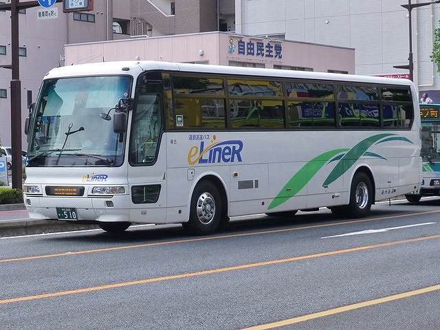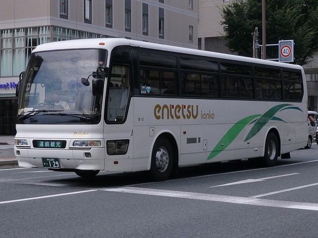 2016年8月に記録したバス画像のよせ集め「浜松駅前で見た遠州鉄道のバス2016」。 久々の更新となる今回のその4では、記録出来た浜松市循環まちバス「く・る・る」専用車の日野ポンチョや高速車・貸切車をまとめて並べていきます。ほとんど2015年のエントリと同じ内容となることを、あらかじめおことわりしておきます。 なお型式・年式は、「遠州鉄道 在籍車両一覧」『バスラマインターナショナル 160号』 (2017),ぽると出版 を参照し追記しました(2017年3月3日)。 <循環まちバス「く・る・る」専用車> 浜松230あ5078.BDG-HX6JHAE(07年車)。 まずは浜松駅を起点に駅周辺の市街地を循環する、浜松市循環まちバス「く・る・る」専用車の日野ポンチョから並べていきます。画像の車両は側面・後面に来年のNHK大河ドラマの主人公となる「井伊直虎」をアピール。後面にはさらに浜松市マスコットキャラクターの「出世大名 家康くん」も貼られており、浜松を大きくアピールしています。 <高速車> 浜松200か510.PJ-MS86JP(06年車)。 続いては高速車の画像を1枚。遠州鉄道の都市間高速バスは「e-LineR」の愛称で、渋谷・新宿線、横浜線、大阪線の3路線を運行中。「e-LineR」専用車の塗装は、白色ベースの貸切車塗装デザインにロゴという簡単なものを当初採用しました。画像の車両あたりまでがこの塗装で登場し、その後現在の銀色ベースのデザインに変わりました。 <貸切車> 浜松22か2500.U-MS815N(94年車)。 最後に貸切車の画像を並べていきますが、記録できたのは浜名湖競艇場と浜松オートレース場への無料送迎バス運用車両のみ。というわけとで、2015年とほぼ同じ車両しか記録できませんでした。まずは貸切最古参格と思しきU規制車でスタンダードデッカーな三菱ふそうMS短尺車。いわゆる上高地仕様車として登場しましたが、現在は無料送迎バス専用車となっている模様。 浜松22か2639.KC-MS829P(96年車)。 こちらは標準的なハイデッカー。遠州鉄道の貸切車は三菱ふそう車を中心に日野車も在籍していますが、無料送迎バスは三菱ふそう車中心の運用となっています。 浜松22か2768.KC-MS829P(97年車)。 同じくKC規制車のMSハイデッカーですが、リヤ側を記録できた車両ということで並べておきます。 浜松200か129.KL-MS86MP(00年車)。 KL規制車のMSハイデッカー。 白色ベースの塗装デザインは元々スーパーハイデッカーなど特別車向けに採用していましたが、2000年代以降はこちらの塗装デザインでの導入がメインとなっています。 PR