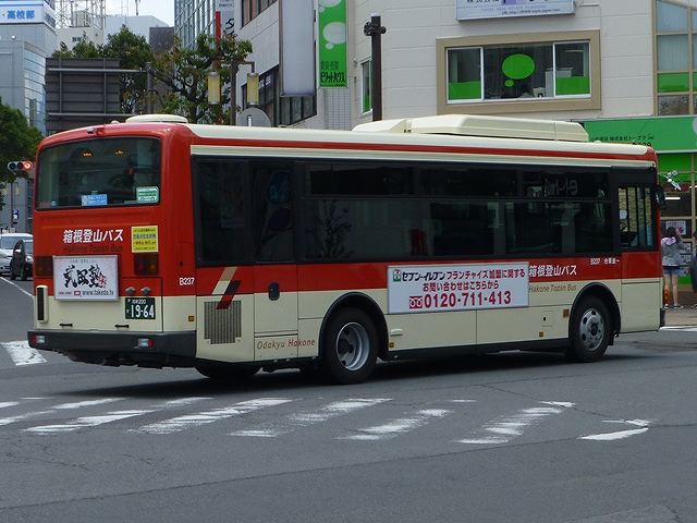 2016年も残すところ僅かとなりましたが、HDDに取り込んだままの手持ち画像がそれなりにありました。年明け以降の新ネタも無さそうなので、手持ち画像を有効活用していく新シリーズを開始していきます。そんな有効活用シリーズ第1弾は、BJハンドブックシリーズの感想めいたものをブログで書くため2016年5月に記録した箱根登山バスの画像のよせ集め、「小田原で見た箱根登山バス」です。今回は記録出来たいすゞ車の一般乗合車画像をまとめて並べていきます。一部再掲の画像もありますことをおことわりしておきます。 なお型式・年式は、『BJハンドブックシリーズ S94 箱根登山バス 東海バス』(2016),BJエディターズ を参照しました。 社番:B103.KK-LR233J1(04年車)。 箱根登山バスでいすゞの一般乗合車は現在中型車のみの在籍。少し前までは大型車も在籍していたのですが、東海バスへのグループ間移籍で姿を消しています。さて、古参格となるのが画像のKK規制車な04年式ノンステップ車という状況。箱根登山バスの代替サイクルは10年くらいの間で一気に短くなりました。この車両も東海バスグループへグループ間移籍するのも時間の問題と推測。 社番:B115.PA-LR234J1(04年車)。 同じく04年式ですが、こちらはPA規制のワンステップ車。屋根上のデンソーエアコンの機器形状がKK規制車からモデルチェンジしたものに変わっています。 社番:B126.PA-LR234J1(06年車)。 青系帯の旧塗装で登場したいすゞ乗合車は09年までとなります。 社番:B178.PDG-LR234J2(10年車)。 「柿渋色」とよばれるオレンジ色帯の塗装デザインは2010年に正式採用。単純な塗り分けに見えますが、側面後部にちょっとしたデザインを施しているところがポイントです。 画像の車両はPDG規制車で少数在籍するワンステップ車。 社番:B230.SDG-LR290J1(15年車)。 SDG規制車は12年から導入開始。ノンステップ車のみの導入となっています。 社番:B237.SDG-LR290J1(16年車)。 16年導入車も記録できました。おそらくこのボディでの最終導入車だと思います。 PR ![]() ![]() |
