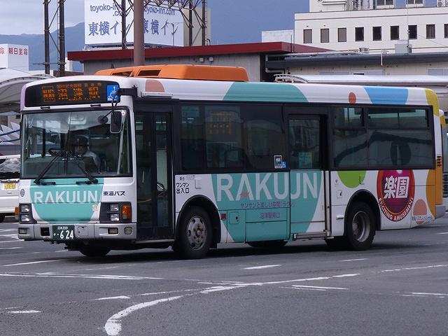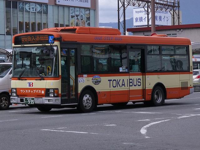 2016年に記録した手持ち画像を有効活用していくシリーズ。BJハンドブックシリーズの感想めいたものをブログで書くため2016年10月に沼津で記録した東海バスオレンジシャトルの画像のよせ集めです。10~11月に更新していた「沼津駅南口で見たバス」シリーズの続きともいえます。今回は記録出来た東海バスオレンジシャトル(旧社名:沼津登山東海バス)の自社発注一般乗合車画像をまとめて並べていきます。一部に再掲の画像が含まれていることをあらかじめおことわりしておきます。 なお、型式・年式は、『BJハンドブックシリーズ S94 箱根登山バス 東海バス』(2016),BJエディターズ を参照しました。 社番:618.沼津200か116.KK-LR233J1(99年車)。 かつては一般乗合車をトップドア仕様で導入していた東海自動車。交通バリアフリー法律施行により前中扉の低床車が導入される状況となった今も、乗降は前乗り・前降り方式を採用しています。そんな低床車のなかで、99年に1台のみ導入した画像のいすゞエルガミオは、トップドア仕様のワンステップ車となっています。 ちなみに東海自動車では「3桁の通し番号 」による社番を制定していますが、見たところ外観に表記はありません。後年ナンバーを社番にあわせた希望番号とするまで、型式等を参照したBJハンドブックが無ければ分かりません。 社番:759.沼津200か465.KK-LR234J1(03年車)。 東海自動車は経営再建の一環として、統括会社と地域毎の運行会社の体制へかわりました。沼津・三島地区では箱根登山鉄道から分離した沼津箱根登山自動車の乗合バス事業を譲受し、沼津登山東海バスとなりました。 沼津登山東海バスは03~05年導入の新車に箱根登山の帯デザインをベースに東海バスのオレンジを加えた画像の塗装を採用しました。箱根登山・東海バスそれぞれに配慮したようなデザインが特徴です。沼津登山東海バスは2016年4月に現社名の東海バスオレンジシャトルに改称され、社名表記は上からステッカーを貼って対応しています。 社番:768.沼津200か528.KK-HR1JKEE(03年車)。 沼津登山東海バス塗装で導入したのは、いすゞLRと日野HRのみ。非常口が側面中央部にあるKK規制車の日野HR。 社番:802.沼津200か624.KK-LR234J1(04年車)。 全面ラッピング広告車も在籍しています。画像のラッピング広告車のスポンサーとなっている遊技場は他社にも全面ラッピング車を走らせています。 社番:830.沼津200か707.PB-HR7JHAE(05年車)。 PB規制車の日野HRは今のところ沼津登山東海バスが05年に導入した2台のみの在籍。うち1台はアニメとタイアップした「ラブライブ!サンシャイン!!」ラッピングバスとなっています。なんでもアニメの舞台が沿線の沼津市内浦地区とのこと。 社番:955.沼津230あ955.PDG-LR234J2(11年車)。 ナンバーを社番に合わせた希望番号で登録するようになった頃から、塗装は東海バス標準デザインで登場しています。PDG規制車のいすゞLRはワンステップ車を導入。 社番:985.沼津230あ985.SKG-LR290J1(12年車)。 東海自動車は2017年の創立100周年に向け、様々な100周年記念事業を行っており、その1つとなるのが100周年記念ラッピングバス「ゆめちゃんバス」。「ゆめちゃん」とは東海バスのオリジナルキャラクターで、これも100周年記念事業のひとつとして制定されたもにです。 社番:1511.SKG-KR290J1(14年車)。 一般乗合車の新車はここ数年いすゞ車が中心となっていますが、たまに日野KRも少数導入しています。SKG規制車の日野KRはワンステップ車のみの導入。 社番:1536.沼津230あ1536.SKG-LR290J1(15年車)。 同じくSKG規制車のワンステップ車ですが、こちらはいすゞLR。ちなみに社番は新車・移籍車関係なく登場した順に付番するため、近年の移籍車導入で900番台もいっぱいに。型式を参照したBJハンドブックによれば「一時期、新東海バスの貸切車に1000番台が付されたため 」一気に1500番台となっています。 PR