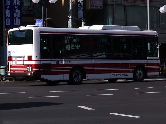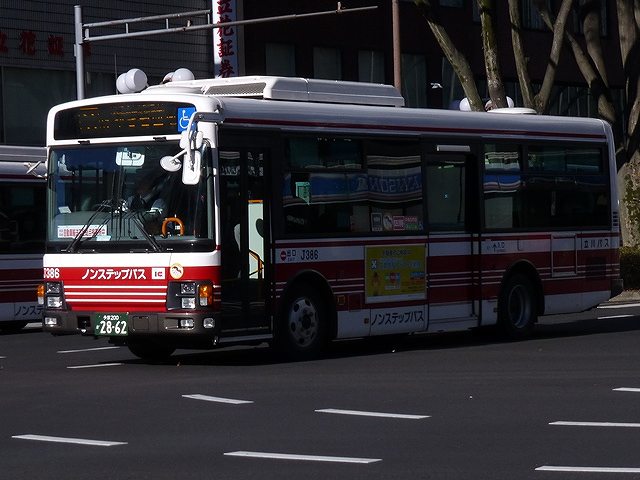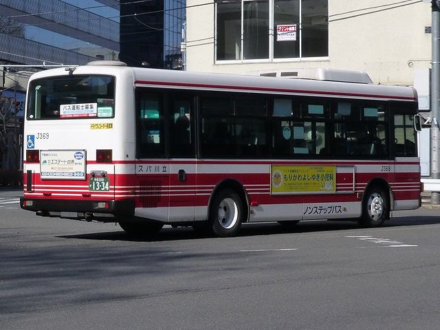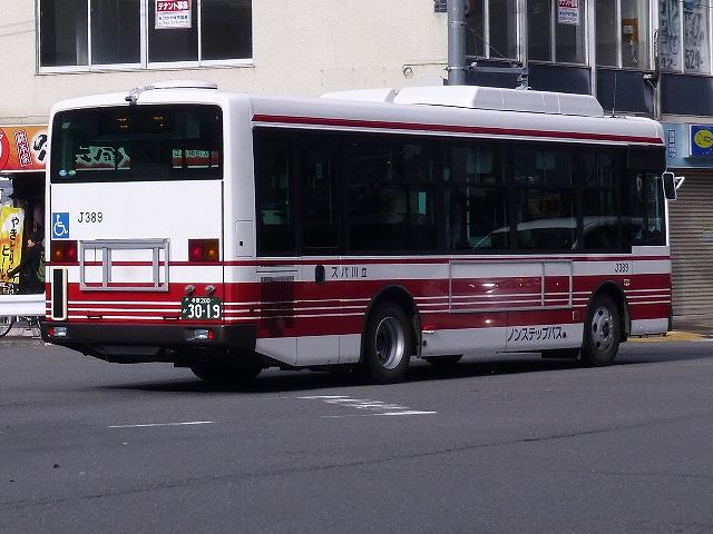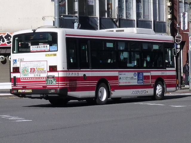 拙ブログでは立川競輪場の無料送迎バス運用車両をほぼ毎年更新していますが、その他の立川バスの車両については、たま~に更新するだけ。新ネタも無いので手持ち画像を有効活用していくべく、今回は「立川駅北口で見た立川バス(中型車編)」と題し、記録出来た中型車の画像を並べていきます。 社番:J367.PA-LR234J1(05年車)※1。 立川バスの中型路線車は狭隘路線を中心に運行しています。立川駅北口発着路線では、北町、けやき台団地への路線が中型車による運行となっています。 現在中型路線車の主力となっているのが、いすゞエルガミオのノンステップ車。エルガミオの導入初期はワンステップを採用していましたが、02年からノンステップ車も導入。以降ノンステップ車のみの導入が続き、中型車のノンステップ化が進みました。まずはPA規制のノンステップ車。 社番:J369.PA-LR234J1(06年車)※1。 おなじくPA規制のエルガミオノンステップ車。PA規制車はサーモキングの冷房を装備しています。 社番:J379.PDG-LR234J2(08年車)。 PDG規制車となってからは冷房機器をデンソーに変更しています。画像の車両は2012年から「リラックマバス4号車」として運行中です。 社番:J386. 立川バスは大型乗合車にATを採用した2011年以降、AT愛用事業者となります。直4エンジンを搭載したこのあたりのLRノンステップ車はもちろんATで導入しています。ちなみに、側面行先表示機を戸袋窓部設置したのも2011年導入車から。2011年導入車は立川バスにとってターニングポイントといえるのではないかと。また、最近の導入車は正面の「後のり」ステッカー表示をやめたようです。 社番:J389.SKG-LR290J2(16年車)。※2。 2016年にモデルチェンジしたエルガミオ。首都圏の事業者では、かなり早い段階で導入しました。画像の車両は導入第一陣のうちの1台。運転席側の側面窓はメーカー標準の中央部固定窓ではなく、全て上部開閉式を採用。 社番:J393. モデルチェンジ後のエルガミオ導入は続いており、低床車の車両代替が進んでいます。 社番:H255.PA-MK27FM(05年車)※1。 最後に三菱ふそう車から、05年のみ導入した10.5mサイズのMKノンステップ車。中型幅10.5mサイズの車両は大型車としている事業者もありますが、立川バスは社番区分から中型車としている模様。同サイズのいすゞエルガJは早々に代替されましたが、MKはまだまだ第一線で活躍しています。 なお、型式・年式は下記を参照しました。 ※1)「バス会社潜入レポート 立川バス/シティバス立川 所有車両一覧表」『バスマガジン68号』,(2014),講談社ビーシー/講談社 ※2)「いすゞエルガミオ 各地で運行開始」『バスラマインターナショナル157号』、(2016)、ぽると出版。 PR