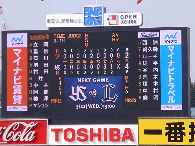 アクセス数より更新回数ということで、今回もプロ野球を観戦したらブログに書くシリーズ。2017年の明治神宮球場観戦はじめへ出かけました。 東京ヤクルト 4 - 2 読売 読売先発の宮国が5回1四球のみの無安打ピッチングを披露すれば、好調中井は3安打と開幕1軍を猛アピール。なお、試合はヤクルトが勝利しました。 読売は山口鉄・マシソンのセットアッパー陣の不調が気になるところ。今年のセントラルリーグはどうなるんでしょうかね。 PR