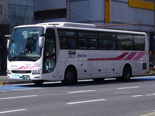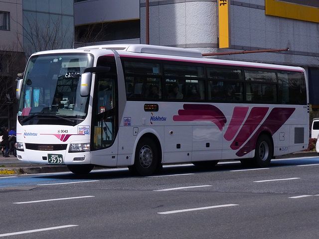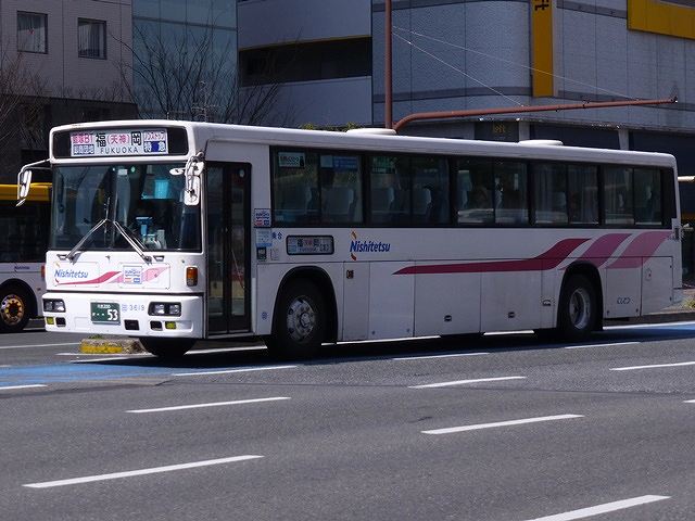3月に福岡市内で記録したバス画像のよせ集めシリーズ。ようやく福岡市内で見られるバスの代名詞、西日本鉄道の車両を並べていきます。今回の西鉄編その1では、記録出来た三菱ふそう車の都市間高速バス車両の画像を並べていきます。 なお、型式・年式は、『BJハンドブックシリーズS81 西鉄バス(高速貸切バス編)』(2013), BJエディターズ を参照しました。 社番:3260.KC-MS829P(97年車)。 まずは短・中距離高速車標準カラーな西工S型ボディのMS。西工S型ボディは1980年代後半~90年代の西鉄の短・中距離高速車の主力として導入していましたが、ここ数年の代替でだいぶ台数を減らしている模様。記録できたのは筑豊方面の路線の運用に入っていた数台だけでした。 社番:3619.KL-MP35JP(01年車)。 短・中距離高速車両の導入コスト削減のため、MPシャーシーに一般乗合車のB型ボディを架装した「新特急車」と呼ばれる高速車が登場。00年に導入した量産第1陣車はトランクを拡大するためボディ部にくいこんだ特徴的な造りとなっていました。画像の01年導入車から設計を見直し、トランクリッド上辺がその他のパネル部の上辺と揃いました。 社番:3923.KL-MP35JP(04年車)。 02年導入車以降はサブエンジン式冷房からオートエアコンを採用。三菱ふそう車の「新特急車」は画像の04年まで導入しました。 社番:4703.QRG-MS96VP(13年車)。 西工ボディへのMSシャーシー供給がPJ規制車から中止されたことから、西鉄ではUD車導入にシフトし三菱ふそう車の導入がしばらくの間少なくなりました。しかしUDは国内のバス事業から撤退し、西工ボディは影響を大きく受けることになり解散。 西工解散後はジェイバス製造のいすゞLV・日野KVな「新特急車」を導入しましたが、イマイチだった模様。2013年に観光型シャーシーのハイデッカー導入を再開し、久々に短・中距離塗装の三菱ふそう車が登場しました。 社番:3043. 型式を参照したBJハンドブックシリーズ刊行以後に登場したMS。 「火の鳥」カラーと呼ばれるこの塗装デザインは福岡県外路線などの中・長距離高速車で採用。 社番:3048. 社番:3050. 記録出来た三菱ふそうの短・中距離高速車で新しいナンバーをつけていた車両の画像も並べておきます。上下で車両が異なり失礼します。 社番:0001. 最後に、東京の新宿と福岡天神を結ぶ日本有数の長距離夜行高速バス「はかた号」専用車両のエアロクィーン。2014年12月より2階建てバスのエアロキングから、個室風プレミアシートなどを装備したスーパーハイデッカーのエアロクィーンに変わりました。塗装デザインは旧来の「はかた号」デザインをアレンジしたものを採用しています。 PR