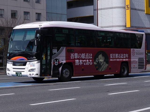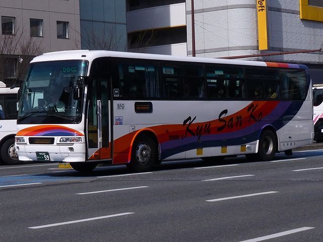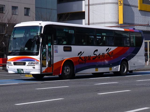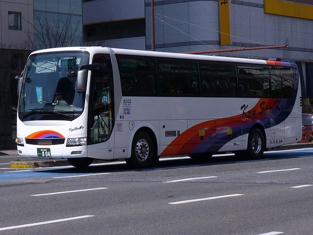 3月に福岡市内で記録したバス画像のよせ集めシリーズ。今回は熊本県内事業者の九州産交バス編と題し、記録出来た都市間高速バス車両の画像を並べていきます。 なお、型式・年式は『BJハンドブックシリーズS85 九州産交バス』(2014),BJエディターズ を参照しました。 熊本22か3291.KC-MS829P(99年車)。 九州産交バスは熊本と福岡を結ぶ「ひのくに号」をはじめ、黒川温泉、さらには宮崎と福岡を結ぶ「フェニックス号」にも共同運行事業者となっていることから、天神周辺で結構見かける存在です。ただ、今回記録出来たのは「ひのくに号」運用車両だけですが。 まずは折戸+側面T字窓、4列シート仕様の三菱ふそうMSエアロバス。扉側のトランクが通常2本のところを3本としているのが特徴。トイレが中央右側にある関係でこのような仕様になっている模様。4列トイレ付車両で運行する都市間高速車の中では古参格の車両になりますが、「ひのくに号」の運用にも入るようです。 熊本200か59.KC-MS829P(00年車)。 同じくKC規制車の三菱ふそうMS。扉側のトランクは3本となっている仕様です。 熊本200か196.KL-MS86MP(02年車)。 変則3本トランクは、02年導入車からトイレが後部配置となったこともありオーソドックスな2本トランクに戻されました。 熊本200か491.PKG-RU1ESAA(06年車)。 モデルチェンジした日野セレガの高速車。4列シート車は折戸仕様を採用しています。画像の車両は「夏目漱石記念年」ラッピング車となっていました。 熊本200か669.PKG-RU1ESAA(09年車)。 新型セレガの導入が続きます。このあたりの導入車両から側面「Kyu San Ko」ロゴが ボディ後部に変更されます。おそらくラッピング広告に対応したものと推測。 熊本200か804.BKG-MS96JP(10年車)。 日野セレガの導入が続くなか、三菱ふそうの高速車が久々に登場。モデルチェンジしたエアロエースで、扉はさすがに折戸というわけにはいかず、標準のスイング扉となっています。 熊本200か972.QRG-RU1ASCA(12年車)。 2012年導入の日野セレガ。「ひのくに号」など比較的距離の短い高速車には7速MTの低馬力車を採用しています。 なお、「ひのくに号」は今年4月のダイヤ改正から西鉄天神高速バスターミナルを起終点に変更しました。この停車順変更により、この記録地点で「ひのくに号」の運用車両をこれまでのように撮影することは難しくなったようです。 PR