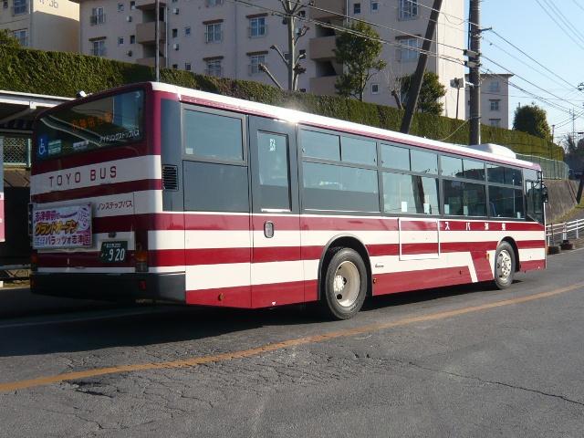 アクセス解析で「新車 東洋バス」というフレーズで拙ブログをご覧いただいた方が いらっしゃいました。内容が伴わず申し訳ございません。 年鑑バスラマのノンステップバス導入一覧から、2007年車がノンステで入っている ことを知ったこともあり、N社訪問のあと足を延ばしてみました。 920、PJ-MP37JM(07年車)。 非常に見づらい画像で申し訳ありません。MFBMノンステ最末期の導入の様子。 リアから。尿素でないことが分かります。 07年車は乗車案内のシールが中扉に入口、前扉に出口。今のところは「前乗り運賃まえ 払い」なんですが・・・。宮ノ台線大型投入か!という電波的妄想はともかく、大型在籍車の 中扉に整理券発行機が取り付けられていました。 今のところ何のアナウンスもありませんが、いずれは中乗り整理券方式導入でしょうか。 921、PJ-37JM(07年車)、同型車。 前面方向幕脇にあった「前のり まえ払い」の文字がありません。今後の動向が楽しみです。 PR