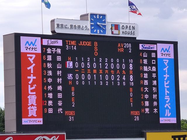 プロ野球を観戦したらブログに書いておく備忘録。プロ野球公式戦のデーゲーム開催は年数試合しかない明治神宮野球場でセパ交流戦を観戦に出かけました。 東京ヤクルト 8 -8 埼玉西武 未だ交流戦で勝ち星が無いヤクルト。今日も西武の楽勝ムードで試合は進みますが、9回に守備の乱れを突いて同点に追いつきました。結局延長12回引き分けとなり、白星はお預けとなりましたが。西武は抑えの増田が山田にホームランを打たれるなど大誤算、同点に追いつかれたのが、安定した守備でおなじみショート源田の悪送球なんですから悪夢としか思えません。源田に助けられた勝利もあるんだから仕方ないですが、外野の田代は話になりません。 PR