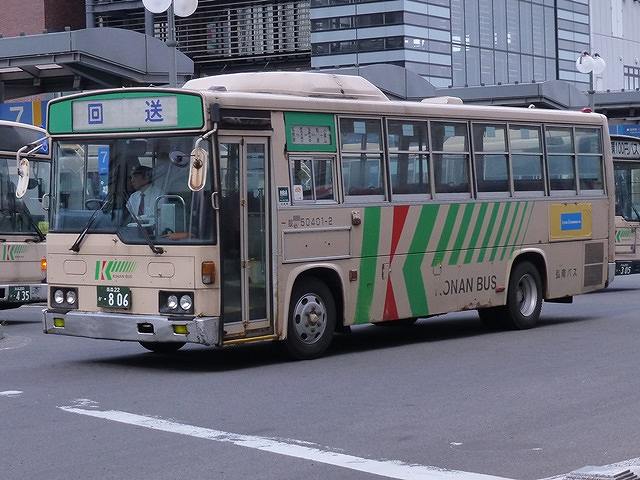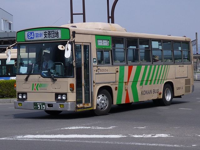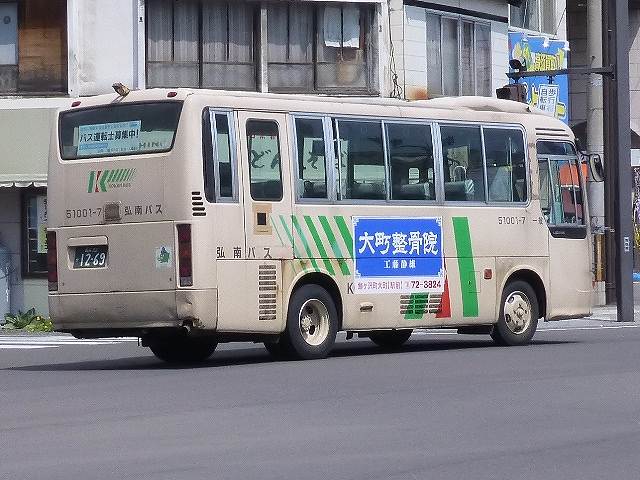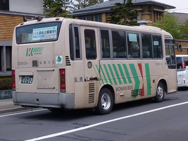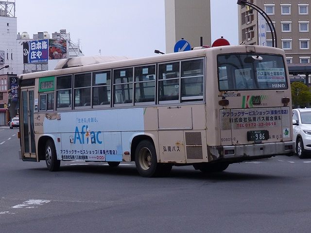 5月に出かけた青森・弘前で記録した弘南バス画像のよせ集めシリーズ。 今回のその3では、記録出来た日野車のうち、記録出来た00年までに導入した自社発注の日野一般乗合車の車両画像を並べていきます。 このエントリも基本的に昨年更新したエントリと並べている画像の車種は同じことをあらかじめお断りしておきます。 社番:50301ー2. 今回も記録できた自社発注の古参格だったのは、91年導入の日野RRトップドア車。前面のウィンカーを積雪などを考慮し、標準よりも上方に設置しているのがポイントです。前面のナンバープレートも、もともとはバンパーではなくボディのほうに取り付けていましたが、最近の補修工事の際にバンパー部の取り付けとなる車両も見られます。 社番:50401-2. こちらは92年導入車。前面のナンバープレートは導入当初と変わらず、ボディに取り付けています。 社番:50402-5. 同じく92年導入車ですが、こちらは扉側ヘッドライト上部に日野レインボーのロゴプレートが残っています。 社番:50504-2. こちらは昨年のエントリでも並べている93年導入車。前面部の補修工事を行ったようで、ナンバープレートがバンパー部に移動しています。 社番:50513-2. 弘前市内100円循環バスの運用がメインとなっている、観光マスクの生え抜きトップドア車。 社番:50601-2. 同じようなトップドア車の画像ばかりですが、こちらは94年導入車。後面のサビ・キズ具合に冬の過酷な状況がしのばれます。 社番:50701-2. 95年導入車。U規制車の導入はこのあたりまででしょうか。 社番:50804-5. KC規制車となった頃から一般乗合車の更なるダウンサイジングを進めた弘南バス。96年に導入したマイクロバスサイズのRX。ほとんどのRXは、後に導入したトヨタコースターや三菱ふそうローザと異なり、立席定員も確保しているため大判ナンバーとなっています。フロントバンパーにあった蓋パーツが無くなっている車両も見かけました。 社番:50809-3. 後面はこんな感じです。 社番:51001-7. こちらは98年導入のRXで、バンパーが銀ではなくボディ色となっているタイプ。補修工場の違いなどでっしょうか?、様々なバリエーションが見られます。 社番:51102-6. 99年導入のRX。バンパーは銀色です。 社番:51108-5. 同じく99年導入車から中型車。このあたりからトップドアながらワンステップ仕様を採用したようです。 社番:51106-9. 後面はこんな感じです。U規制車との違いは、テールライトがバス協タイプから角型のものに変わったくらいでしょうか。 社番:51203-5. 青森200かナンバーとなった00年導入車。 ゴールデンウィークは「弘前さくらまつり」への観光客向けに、弘前駅と弘前公園を結ぶシャトルバスを随時運行しています。シャトルバスは各営業所からも応援にかけつけるので、比較的効率よく車両を見ることが出来ます。 PR
