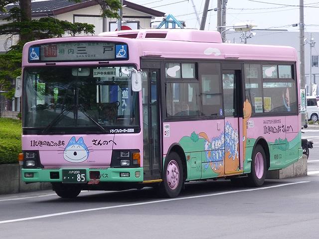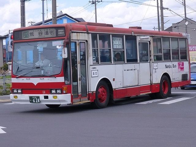 今年5月に八戸で記録したバス画像よせ集めシリーズ。今回は市営バスとともに八戸で路線バス網を展開する南部バスこと、岩手県北自動車南部支社の車両画像を並べていきます。 さて、南部バスはもともと現在の八戸駅と五戸を結ぶ南部鉄道を祖とする事業者で、鉄道廃止により社名を南部バスに改称しました。数年前までいわゆるモノコックボディないすゞCJM/CLMが現役で在籍していたことや、2010年に東京と八戸を結ぶ高速バスの共同運行から撤退→WILLER(ウィラー)のツアーバスに鞍替えするなど、バスマニア的に話題の豊富な事業者でしたが、経営状況は非常に苦しかったようです。 南部バスは2016年11月に民事再生法を適用し事実上倒産。バス事業はみちのりHD傘下の岩手県北自動車に譲渡され、2017年3月より岩手県北自動車 南部支社として再出発しています。「南部バス」は愛称として引き続き使用し、塗装の変更も無し。岩手県北バスのロゴ表記が加えられた程度のため、今のところ見た目大きな変化は感じられないのが正直な印象。もっとも、みちのりHD傘下入りした岩手県北自動車の在籍車両の代替状況を見ると、南部バスの陣容も数年のうちに大きく変わっていくことになるのでしょう。 というわけで今回の南部バス編その1では、最古参格の京浜急行移籍車や、いすゞエルガミオ初期導入車の画像を並べていきます。 八戸22か620. いまや最古参格となった京浜急行から移籍した純正キュービックボディのP規制車。シートは薄いパイプシートで、屋根上に換気機器を装備した仕様ですから相当昔の京浜急行の車両ということが分かります。前面は比較的最近補修したようですが、側面の屋根は腐食もありだいぶくたびれた状態。 八戸200か624. 同じく京浜急行からのいすゞLV移籍車。こちらは京浜急行時代の前面行先表示横に運賃支払い方法幕が残っています。側面扉に装備した乗降サボは東武バス発生品の再利用でしょうか。 八戸200か11. 京浜急行移籍車のいすゞLVが続きますが、こちらは屋根上換気機器が無くなった頃の車両。前面。後面の退色がくたびれた印象をアップさせますが、窓に貼られた「冷房車」ステッカーでポイントアップです。 八戸200か58. 古参の移籍車が話題になることの多い南部バスですが、もちろん生え抜きの一般乗合車も在籍。よく見かけるのは、エルガミオないすゞLRでそれなりの台数が在籍しています。 まずはエルガミオにモデルチェンジしたばかりの頃に導入した車両。ワンステップですが車椅子対応のスロープを装備していません。ちなみに南部バスの乗合車塗装はエルガミオから現行デザインを採用しました。 八戸200か61. 同時期に導入したLRをもう1台。こちらの車両は方向幕を装備しています。 八戸200か85. このあたりの導入車から中扉部に車椅子用スロープを装備。画像の車両は三戸町出身の絵本作家馬場のぼる氏の代表作「11ぴきのねこ」をデザインしたラッピングバスとなっています。 八戸200か127. この頃はコンスタントにエルガミオのワンステップ車を導入していたようです。この車両は最近ボディ再生を行ったのか、大きな腐食がありませんでした。 八戸200か128. こちらはボディに腐食が出ているエルガミオ。赤色は退色が目立ちます。正面に広告看板枠を装備している車両も在籍しています。 八戸200か176. こちらはデンソーの直結冷房を装備したエルガミオ。側面の行先表示が前中扉間設置に変更となりました。画像の車両は、八戸市内循環コミュニティバス「るるっぷ八戸」右まわりの運用に入っていました。「るるっぷ八戸」はオリジナル塗装の専用車で運用していたこともあったようですが、現在は正面に看板を掲示した一般乗合車となっているようです。 PR