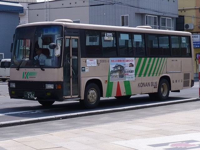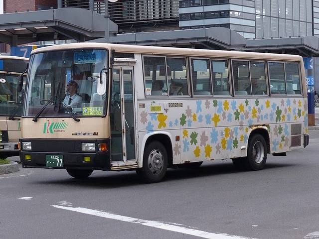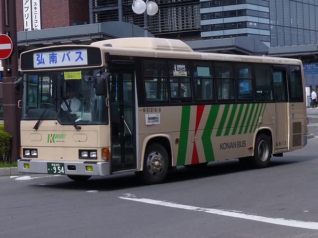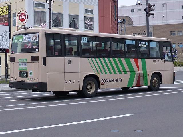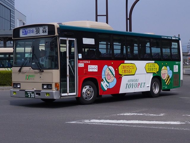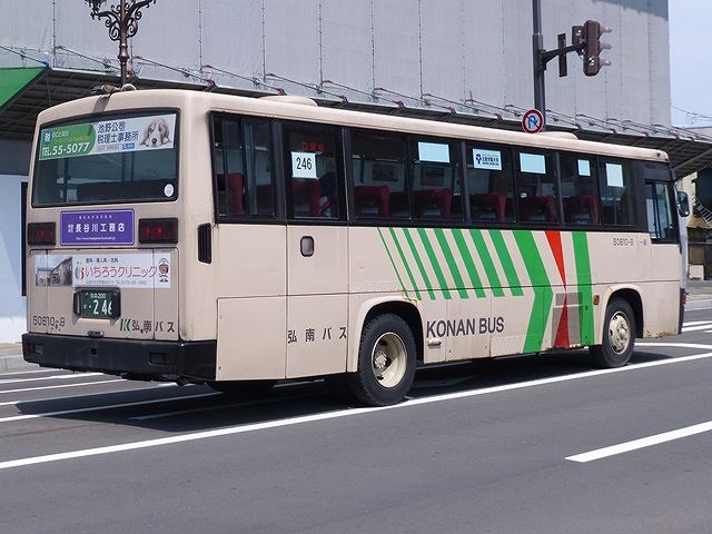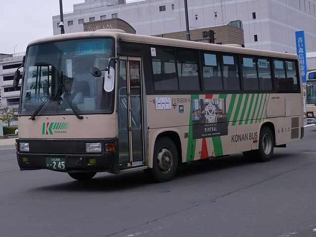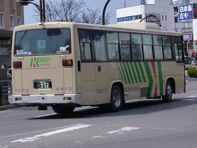 5月に出かけた青森・弘前で記録した弘南バス画像のよせ集めシリーズ。 今回のその5では、記録出来た日野の移籍導入車の画像を並べていきます。 今回のエントリも並べている画像の車種は昨年更新したエントリとほとんど同じです。むしろ昨年のほうが大型移籍車の画像も並べているので、面白いかもしれません。 社番:50121-2. 路線車は新車と並行して移籍車も導入しています。トップドア車を採用してきた弘南バスだけに、移籍車もトップドア車を中心に導入しています。とはいえ、移籍車になりそうなトップドア仕様の中型路線車などそんなにありませんので、トップドア仕様の中型送迎車を路線車改造しました。まずはバンパーが黒色でサブエンジン式冷房を装備した89年式のRJ。送迎車マスクの中型車に行先表示など路線バス機器を後付け改造しています。ボディにはラッピングで「さくらまんかいバス」となっていますが、なんらかの企画で作成したものと推測。 社番:50122-9. 同じく89年式の中型送迎改造車ですが、こちらは銀色バンパーで直結冷房仕様となっています。 社番:50315-2. 少数ですがトップドア仕様の路線移籍車も在籍しています。画像の車両は弘南バスと同じくトップドア車を採用していた箱根登山鉄道からの移籍車。箱根登山鉄道の特徴といえる側面の行先表示位置に機器は残っているようですが、白幕表示で使用せず行先サボを使用しています。 社番:50609-9. 社番:50610-9. こちらはハイバックシートを装備したちょっとグレードの高そうな送迎車を路線車改造。どちらも94年車で登録番号が連番となっていることなどから、同じところで使用していた車両と推測。 社番:50707-2. 同じくトップドア仕様の送迎車を改造した95年車。銀色バンパーにヘッドライト周囲部は黒色に塗り分けられているのが特徴。昨年「ふらいんぐうぃっち」という弘前を舞台としたアニメのラッピングバスとなっていた車両です。 社番:51214-2. 久々に登場したトップドア仕様の路線移籍車。昨年いただいたコメントから、元は朝日自動車グループの日光交通(東武ダイヤルバス引継車)からの移籍車とのこと。扉部は塗り忘れたのか、白色のままとなっています。 社番:51215-2. 社番:51216-9. 社番:51217-9. 朝日自動車グループからの移籍車導入が続く弘南バス。ATで前後扉仕様のツーステップ車もまとまった台数がやってきています。 社番:51221-9. 朝日自動車グループからの移籍車導入はさらに続き、前中扉ワンステップ仕様の移籍車も登場。ワンステップ車ですが車椅子対応のスロープは装備していません。 PR