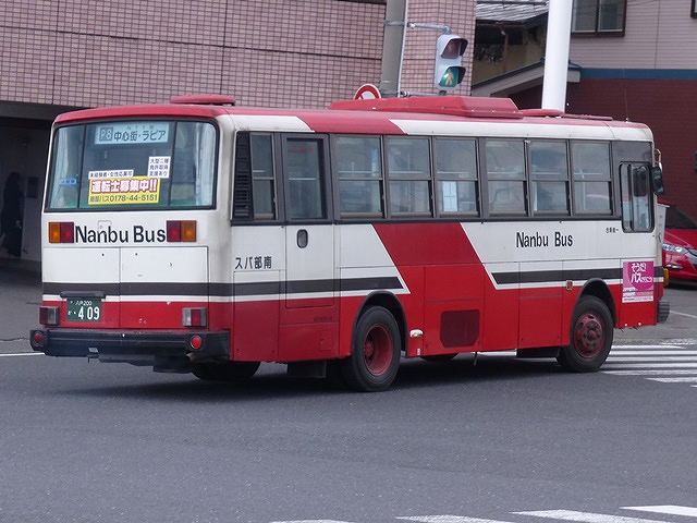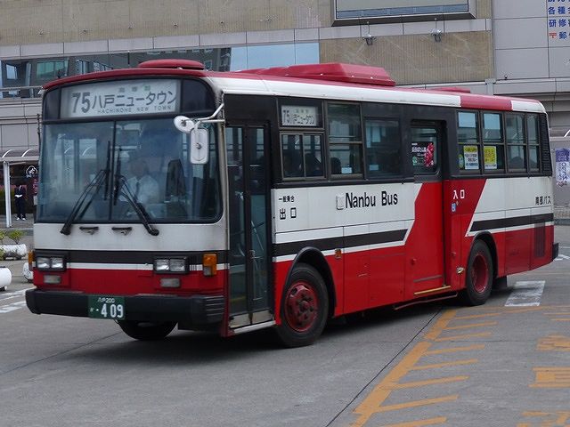 今年5月に八戸で記録したバス画像よせ集めシリーズ。今回は南部バス編その2と題し、「八戸200か269」から「八戸200か409」までの記録出来た岩手県北自動車南部支社の一般乗合車両画像を並べていきます。 八戸200か269. 京浜急行バスからの移籍車導入が続いていた南部バスに都営バス移籍車が登場。やってきたのはメーカー標準のキュービックボディのいすゞLV。同じ頃に八戸市営バスにも同型のいすゞLVが移籍していますが、新車・移籍車導入で既に代替済みとなっています。 八戸200か277. 少ないですが新車も継続導入しています。おなじみのいすゞLRワンステップ車。 八戸200か309. 都営バスからのキュービック移籍車導入が続きます。 八戸200か318. 都営バス移籍車も「るるっぷ八戸」の運用に入ることもあるようです。 八戸200か336. 都営バスの廃車を中古バスとして売却することが知事の方針で中止となったこともあり、南部バスの移籍車導入がこのあたりからバラエティに富んだ車種へと変化していきます。まずは小田急バスから富士7EボディのいすゞLV移籍車。 八戸200か392. 小田急バスからは富士6EボディのいすゞLRも移籍しています。黒帯部は他車同様ホイルアーチ上辺部にあわせたため、正面の白色部が広く少々しまらない感じ。 八戸200か409. こちらも同じく小田急バスから移籍した富士6EボディのいすゞLR。こちらは黒帯部をヘッドライトパーツ上辺部にあわせたので、だいぶイメージが変わります。 PR