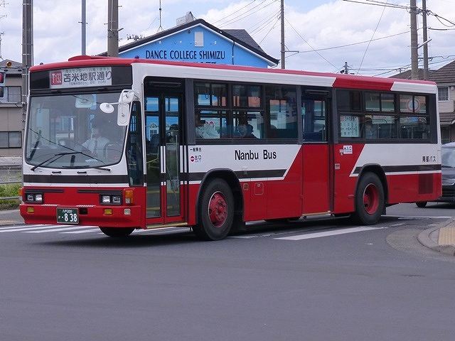今年5月に八戸で記録したバス画像よせ集めシリーズ。南部バス編最終回となるその4では、「八戸200か758」以降の記録出来た岩手県北自動車南部支社の一般乗合車両画像を並べていきます。 八戸200か758. まずは2014年に登場したウィラーカラーのいすゞLVワンステップ移籍車。もともとWILLER EXPRESS西日本が難波のOCATとWILLERバスターミナル大阪梅田を結ぶ路線バス向けに導入した車両です。この路線は2014年7月に廃止となり、2台が南部バスへ移籍しました。南部バスは正直他社よりもだいぶ古い年式の移籍車ばかり導入している印象だっただけに、ウィラー側の理由があるとはいえ、こんな新しい年式の車両が登場するとは驚きでした。南部バス移籍後は岬台団地とラピア・ピアドゥを結ぶ路線の専用車となっています。 八戸200か763. 遠州鉄道から富士7Eボディの日野HTツーステップ移籍車をリピート導入。先ほどのエルガが、あくまでもイレギュラーな導入だったことを実感します。経年車とはいえ、遠州鉄道時代の手入れのよさですから、腐食した既存古参車の代替には十分といえそうです。 八戸200か782. こちらは立川バスから移籍のいすゞLVツーステップ車。立川バスでは複数台のLVツーステップ車に排気ガス規制に対応したNOx・PM低減装置を装備して車検を継続しましたが、徐々に代替が進んでいます。年式の割に他事業者への移籍事例が見られる不思議な存在でもあります。 八戸200か807.SKG-LR290J1(16年車)※。 16年導入の新車は、いすゞLRノンステップ車。南部バス初のノンステップバスです。 なお、この車両の型式・年式は『バスラマインターナショナル 155号』掲載の「ノンステップバス採用実績」を参照しました。 八戸200か821. 中扉4枚折戸仕様の日野RJワンステップ車は東武バスからの移籍車。おそらく朝日自動車系列事業者を経由して移籍していると推測しますが、はたして。なお、東武バス時代に「ワンステップバス」と表示していたヘッドライト間の行灯は塗りつぶされています。 八戸200か838. 純正キュービックボディのいすゞLVツーステップ車は、ヘッドライト上部の眉毛モールが特徴の山陽バスからの移籍車。山陽バスも立川バス同様、排気ガス規制対応のNOx・PM低減装置を装備して車検を継続したKC規制車のいすゞLVが在籍していました。それにしても移籍車は経年車ばかりという感じです。 八戸200か860. 最後に遠州鉄道で少数派だった富士7EボディのいすゞLV移籍車。岩手県北バス南部支社発足後に登場した車両から、ボディの「南部バス」表記がロゴのようなタイプに変わりました。地元新聞の記事によれば、みちのりホールディングスでは南部バスの古参車代替を進め、20年超の車両を数年内に置き換えていく方針とのこと。登場したばかりの車両ですが、現時点で車齢20年超ですから活躍は短そうです。 PR