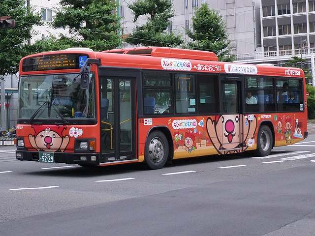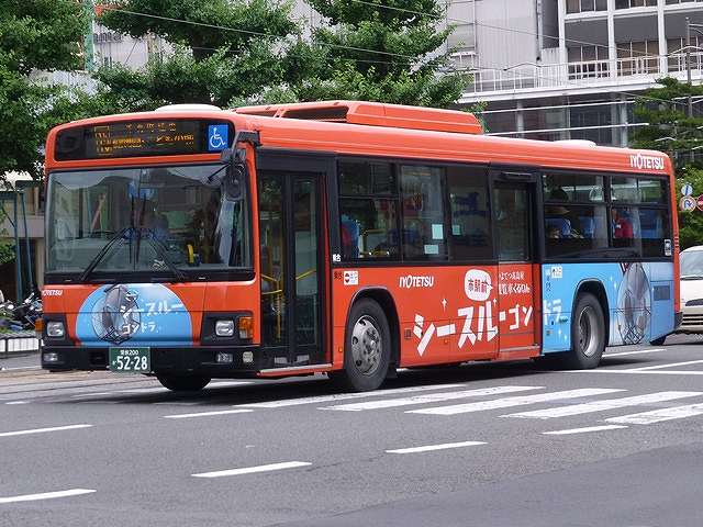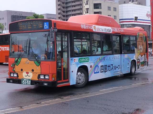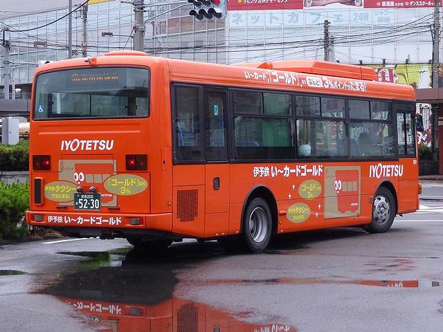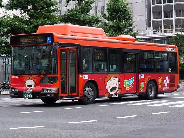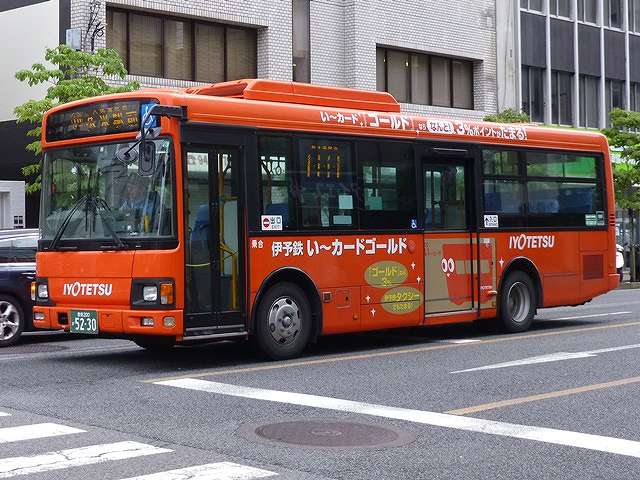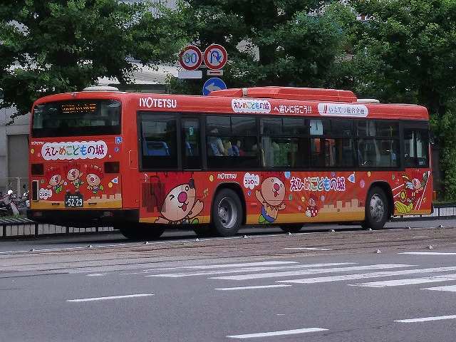 2017年7月に記録した伊予鉄道のバス画像よせ集めシリーズ。今回のその4では、愛媛ナンバーの書体変更により一気に5000番台となった一般乗合車のうち、画像を記録出来た5157から5285までの一般乗合車画像を並べていきます。 愛媛200か5157. まずは、他地域で見かけることが少ないHR10.5mサイズのCNG改造車。伊予鉄道ではまとまった台数が在籍していることと、松山空港線メインの運用から、松山市内中心部で簡単に見ることが出来ます。なお、伊予鉄道のHRの特徴となっていた中扉上のスピーカーは、このあたりの車両から装備中止となったようです。画像の車両は四国ガスの国体協賛+新塗装デザイン風な全面ラッピング広告車となっています。 愛媛200か5228. CNG改造したHRのほか、KVノンステップ車も導入。大型車の代替にHR10.5mを導入してきたこともあり、純然たる大型新車はKC規制車以来久々の登場となりました。 愛媛200か5229. 1つ目KVノンステップバスをもう1台。こちらは「えひめこどもの城」全面ラッピング広告車となっています。 愛媛200か5230. HRのCNG車、KVノンステップ車のほか、KRノンステップ車も導入。画像の車両はバンパーがオレンジ色になっていることから、新デザインに塗り替えられた模様。 愛媛200か5231. CNG改造車は数次にわたり導入。画像の車両はラッピング広告無しの旧塗装の状態で運行していました。 愛媛200か5285. 2010年にはBRCハイブリッドを導入。当初は帯部が少々異なるハイブリッド車専用デザインでしたが、現在は四国電力の新デザイン風全面ラッピング広告車となっていました。 PR