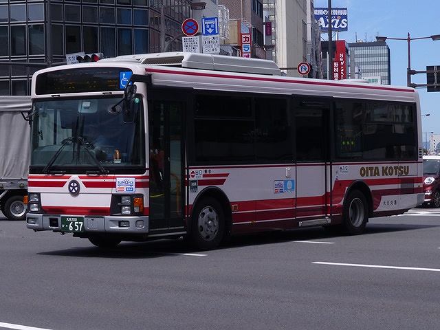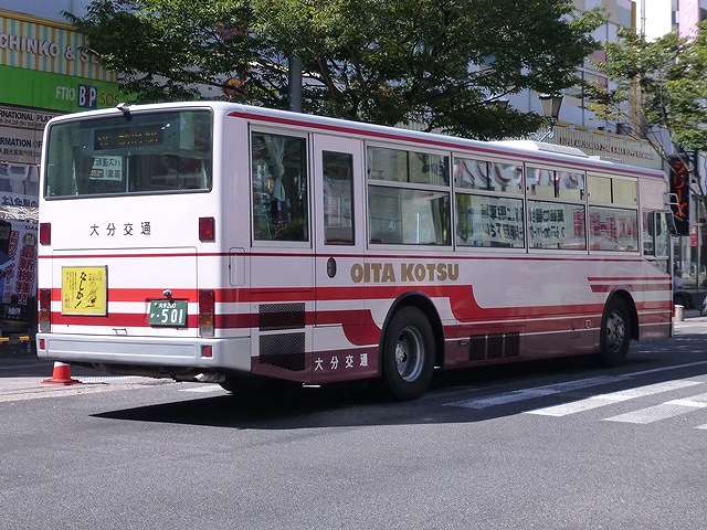 9月に大分駅前で見たバス画像のよせ集めシリーズ。今月は大分ネタの更新ばかりです。 今回は大分交通編その3では、記録出来た大分200か354から657までの一般乗合車両画像を並べていきます。 大分200か354. まずは西工ボディを架装した、いすゞLRワンステップ車。エルガミオにモデルチェンジして以降、LRは純正ボディで導入していましたので、ここで西工ボディを採用するとは少々意外。結局、西工ボディでの導入はイレギュラーだったようで、増備はありませんでした。 大分200か417. 大分200か418. というわけで純正ボディで登場したLR。登録番号を『バスラマインターナショナル121 号』掲載の「大分バスグループ在籍車両一覧」から推定すると09年式でしょうか。このあたりから大分交通の主力となる中型車はノンステップ車を本格採用するようになりました。上下で車両が異なり失礼します。 大分200か431. 09年は久々に大型の一般乗合車となる、いすゞLVワンステップ車も導入。画像の別府配置車両は一番長いQ尺で登場し、APU線中心の運用となっています。ちなみにLVワンステップ車は大分にも配置されましたが、こちらは標準のN尺車を採用。今回見ることが出来ませんでした。 大分200か466. いすゞLRノンステップ車の導入が続きます。 大分200か492. 画像の車両のように国交省標準ノンステップバスのステッカーを貼っているLRはなぜか少ない大分交通。 大分200か520. 大分200か501. 時折移籍車を導入している大分交通ですが、APU線向けに神奈川中央交通からMPツーステップ車が登場。 貸切・エアライナー転用車がメインのAPU線に、元スヌーピー等のハイバックシートではなく、オーソドックスなツーステップ車を配置させるとは。見たところ内装はカーテンを設置したくらいで、シートなど神奈中時代のままの模様。正面の運賃確認窓は埋めず、「SUNーQパス」のステッカーを仕込んでいるところがポイントです。上下で車両が異なり失礼。 同時期に富士7EボディのいすゞLVツーステップ車も神奈川中央交通から移籍しているのですが、短時間の滞在では見ることは出来ませんでした。 大分200か526. イレギュラーな車種は移籍車だけ。自社発注の一般乗合車は、いすゞLRノンステップ車の導入が続きます。 大分200か657. 直4エンジンを搭載したLRとなったあたりから、濃色の側面ガラスを採用。 PR
