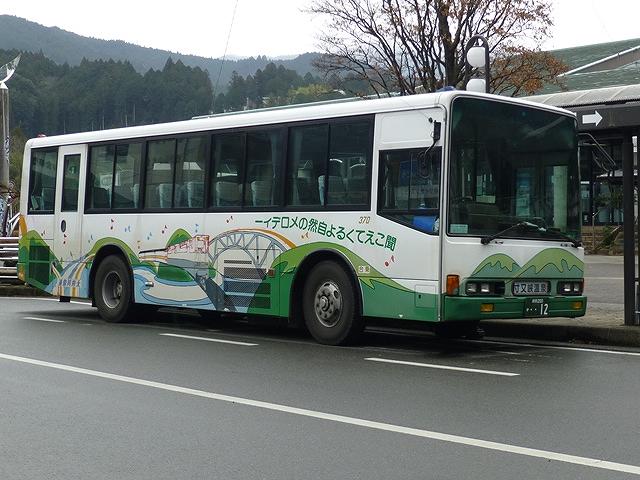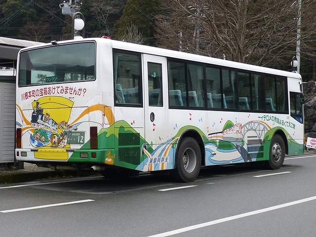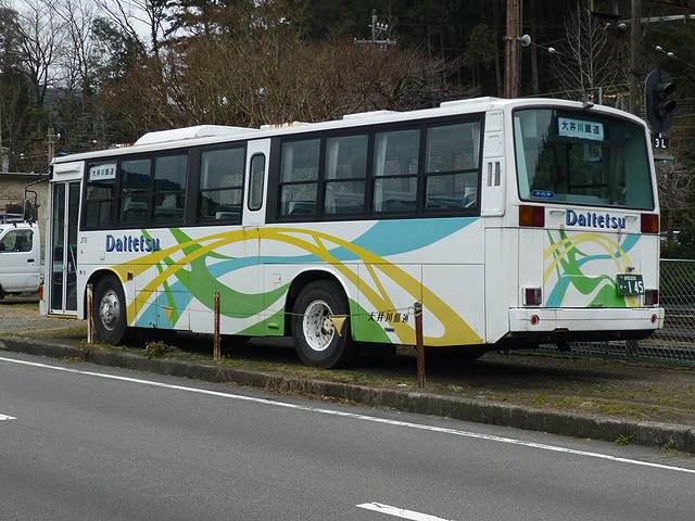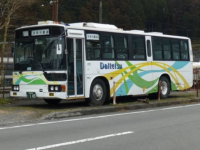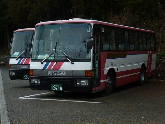 容量の関係からバス関連書籍の感想めいたものなど、主だった更新は別ブログ(通称2つ目のブログ)で行っています。 「右斜め後からの1枚」と題した、バス車両を右斜め後から記録した画像を並べるだけのシリーズ。その月に記録した画像をメインにするルールで更新しています。 静岡200か69(車号:373).2019年2月静岡県川根本町千頭駅前で記録。 今回は大井川鐵道の路線バスを運行する大鉄アドバンス在籍の三菱ふそうMPを右斜め後から。後面側に行先表示は無く、「ワンマン」のプレートが掲げられています。ボディには、山をメインに蒸気機関車列車や吊橋など沿線エリアをイメージしたイラストが描かれています。 静岡200か69(車号:373).2019年2月静岡県川根本町千頭駅前で記録。 左斜め前からの画像。 トップドアのツーステップバスで、フロントガラスはオプションの1枚仕様を採用。行先表示はいわゆる行灯部に設置しています。運用は寸又峡温泉への路線メインということで、着席を重視したハイバックシートが並び補助椅子も装備。ちょっと豪華な送迎バスという感じですが、屋根に取り付けられた青色のマーカーライトが路線バスの証。 静岡200か12(車号:370).2019年2月静岡県川根本町千頭駅前で記録。 寸又峡線メインの運用車両はもう1台。同じくトップドア仕様の三菱ふそうMP。先ほど並べた車両は、この車両の仕様にあわせて導入した増車となります。ボディに描かれたイラストは異なっていますが、だいぶ退色・劣化しています。 さて、大鉄アドバンスの一般乗合車の多くは千頭駅隣接した道の駅奥大井「音戯の郷」の大型バス駐車スペースの一角に留め置かれています。せっかくなので大鉄アドバンス在籍の一般乗合車画像をいくつか並べていきます。 静岡200か718.2019年2月静岡県川根本町千頭駅前で記録。 唯一のノンステップバスとなる日野HR10.5mサイズは、名鉄バスからの移籍車。ボディの社名表記を変えたくらいで塗装はそのまま。シートカバーも名鉄バスのものを活用しています。長島ダム・接祖峡を経由し井川線閑蔵駅を結ぶ閑蔵線専用車となっており、行先表示は前面・横面に経路を表記した固定看板となっています。 静岡22き2618(車号:349).2019年2月静岡県川根本町千頭駅前で記録。 エアロバスK顔の三菱ふそうMPは2台在籍。現在は予備車となっていますが、繁忙期の続行便などで出番がある模様。 静岡200か145(車号:375).2019年2月静岡県川根本町千頭駅近傍で記録。 大鉄アドバンスの一般乗合車といえば、マニア的に有名なのがこの車両。都営バスから移籍したエアロスターKな三菱ふそうMP。シートを増設するため中扉を埋めるなど大掛かりな改造を行っていますが、サッシ窓の部品に丁度良いサイズが無かったのかナゾの固定窓を設置。外観的にも特徴のある車両となっています。車検こそ受けているものの、運賃箱は既に取り外されており余程のことが無い限り動くことは無い模様。営業所近くの線路脇がMP専用車庫となっています。 バス停留所の画像も1枚。停留所は路線図に書かれたところ以外にもいくつかありますが、バスは運転手さんの肉声放送のため地元住民の利用しかないような停留所は案内せず通過していくので注意が必要。ちなみに路線図の「白沢温泉」を経由するのは上下それぞれ1本のみ。現在は停留所に隣接する「時之栖もりのくに」の温泉施設「もりのいずみ」という停留所名となっています。 奥泉駅停留所から先は狭隘な山道をひたすら走り、開けたところが寸又峡温泉となります。温泉街の狭い坂道を登ると終点「寸又峡温泉」。停留所は土産物屋を併設しており、切符の販売窓口もあります。 今回ド閑散期の2月に千頭へ出かけたのは、大鉄アドバンスが2018年度いっぱいで路線バスの通年運行を終了するという報道が夏ごろあったため。夏ごろの報道から実際に行くまで随分かかりましたが、その後どうなったのか知るには丁度良いと勝手に決め付けて出かけました。もちろん停留所などに廃止を報せるような掲示など無く、4月以降具体的にどうなるのかは分かりませんでした。寸又峡は近年話題の観光スポットもある温泉街ですが、道が狭いのでマイカー利用は正直控えたい場所です。とはいえ現状でも本数の多くない路線バスが廃止となっては・・・。今後あるであろう正式な発表が気になるところです。 PR ![]() ![]() |