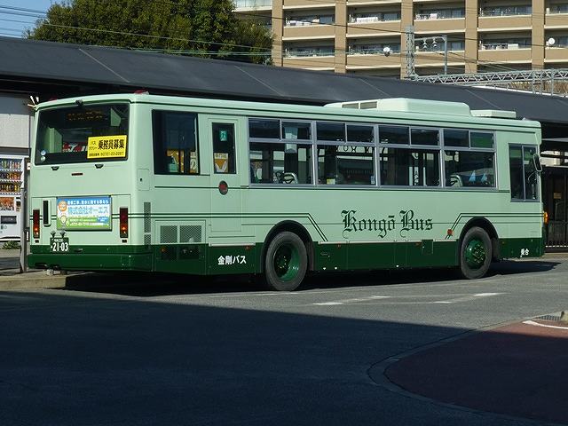 画像ファイルの容量から、2018年から主だった更新を別ブログ(2つ目のブログ)に移しておりますが、残った容量を有効活用すべく「右斜め後からの1枚」シリーズをメインに更新中。 表題通りバス車両を右斜め後から記録した画像を並べるという企画ですが、その月に記録した画像をメインにするというひと手間かけたルールを採用しています。 別ブログで2009年11月からスタートしたチンケな企画にも関わらず、今回「その100」を迎えることが出来ました。過去、同じ車両の画像を並べていたりするので100回目の更新ではありませんが、まさか10年以上続くことになろうとは。 和泉230い1604.2020年2月大阪府富田林市富田林駅前で記録。 節目の「その100」ですから、何か記念になるところを。ということで、今回は大阪府南河内地域の富田林市東部から太子町・河南町・千早赤阪村に路線網を展開している金剛バスこと、金剛自動車に在籍する西工ボディな三菱ふそうMPを右斜め後から。 何を隠そう、金剛自動車の三菱ふそうMPは、この「右斜め後からの1枚」シリーズを始めたきっかけとなった車両となります。 さて、金剛自動車の車両はいろいろと特徴的な装備を施しており、外観的に有名なところといえるのがボディ中央の裾部にわざわざ取り付けた「モール」。ボディの構造と関係なく、いまなお裾部に「モール」を装備しているのは金剛自動車くらいでしょうか。塗装はシックな濃淡グリーンで、中央部に花文字アルファベットで大きく「KongoBus」というデザイン。 和泉230い1604.2020年2月大阪府富田林市富田林駅前で記録。 左斜め前からの画像。 「モール」は前中扉間のボディ裾部に取り付けられています。 金剛自動車では2003年からワンステップ車の導入を開始し、このときから前後扉仕様から前中扉仕様となりました。扉側の花文字アルファベット「KongoBus」は前後扉仕様のころはどちらも中央部にありましたが、中扉となってからは中扉後部の位置に変わりました。 内装は中扉より後部の扉側シートが横向きとなっているという、この時代ではかなり珍しいシート配列を採用しています。 和泉230あ1903.2020年2月大阪府富田林市富田林駅前で記録。 2007年は三菱純正ボディのMPワンステップ車を導入。純正ボディでも、もちろん「モール」を装備し、扉側後部は横向きシートの配列、他車に無い前面の視野確認窓は付けないなど、こだわった造りとなっています。 和泉230あ2103.2020年2月大阪府富田林市富田林駅前で記録。 2008年に導入したノンステップ車から塗りわけデザインを変更し、花文字アルファベット 「KongoBus」が両側ともボディ中央部となりました。 2009年導入車はUDのRAワンステップ車となり、三菱ふそうより西工ボディ架装を選んだ模様。ただし内装はごく普通の前向きシートが並ぶ配列となっています。 和泉230あ2101.2020年2月大阪府富田林市富田林駅前で記録。 ボディ裾部にわざわざ取り付けている「モール」ですが、画像の車両のように側面ラッピング広告を施した場合は取り外しています。着脱可能だったとは! ****** ****** ****** せっかくなので、2008年2月の雪の日に記録した金剛バスの画像の一部を改めて再掲します。 和泉22き760.2008年2月大阪府富田林市富田林駅前で記録したものを再掲。 2008年当時古参格だった58MCなMP前後扉車。側面行先表示は前面と同じサイズのものを装備し、後部は省略というこだわり。内装はごく普通に前向きシートが並び、床材は通路部のみで座席部は木の床・・・。こだわり重視でお金をかけたいのか、コストカットしたいのか、なかなか謎な造りだった印象。側面の「KongoBus」表記はなんとも味のあるロゴとなっています。 和泉22き800.2008年2月大阪府富田林市喜志駅前で記録したものを再掲。 96MC導入時から、花文字アルファベットの「KongoBus」となります。 ちなみに行先表示の「阪南ネオポリス」は現在「近つ飛鳥博物館」に改称しています。 PR ![]() ![]() |