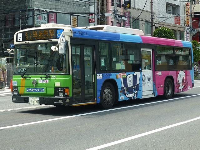 同じデザインのラッピングバスは都内の事業者に複数台施されていますが、やはり東京都交通局の車両をということで。今月この車両の画像を並べたのは、お分かりの通り7月に開幕した国際的なイベントのマスコットキャラクターをデザインしたラッピングバスだからです。 局番:K-N343.2021年7月東京都墨田区「錦糸公園前」交差点で記録。 左斜め前からの画像。