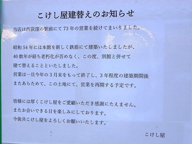 社番:E829.2022年12月東京都杉並区「荻窪二丁目」交差点で記録。 せっかくなので、2020年12月に更新した三菱ふそうMKノンステップ車の画像も並べておきます。やはりこの車両も「こけし屋」の看板はありません。 ちなみに「こけし屋」の広告看板が無くなったのは、2022年3月に閉店したため。 お店があった西荻窪駅近くへ行ってみると・・・。 「こけし屋」建築工事の図。2022年12月に記録。 建物は無くなっており、建設工事を待つばかりという感じでした。 新たな建物での営業再開を楽しみにしたいと思います。 あわせて関東バスへの広告看板出稿もお願いしたいところです。 ***** ***** ***** さて、今回で2022年の更新は終了いたします。本年もご覧頂きありがとうございました。 2022年は更新に際し、その月に記録したものをメインにする以外に、同じメーカーの車両を続けて更新しない、一度メインで並べた型式の車両は年内使えない、一度メインで並べた事業者は年内使えないなど、いくつかの追加ルールを課してみました。9月に京王バスの画像を並べていたので、京王クリスマスバスが復活していたらルール達成ならずでしたが、結果的にセーフ。自己満足でしかありませんが、2022年に目標を達成することが出来た数少ない成功例となりました。なので今回わざわざ書いてみました。 それでは、皆様よいお年をお迎えください。 PR