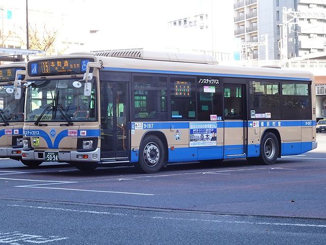 車号:9-1917.2024年12月神奈川県横浜市鶴見区鶴見駅東口で記録。 今回は横浜市交通局を代表する車種といえる、現行ジェイ・バス製ボディのいすゞLVを右斜め後から。 メーカー標準だと運転席側ホイールベース間の側面窓中央3枚が固定ガラスとなりますが、横浜市交通局は全て上部開閉する仕様を採用しています。 車号:9-1917.2024年12月神奈川県横浜市鶴見区鶴見駅東口で記録。 左斜め前からの画像。 トルコンAT車で、燃料タンクは扉側配置となっています。燃料タンク設置の関係で、扉側前タイヤハウス部に座席はありません。また、中扉より後は、運転席側は2人掛けシートですが、扉側は前2席が1人掛けシートとなっており、ラッシュ型をベースに都市型をミックスしたような配列となっています。シートは樹脂製バックパネルで背もたれ上部に手すりの付いたメーカー標準のものを装備していますが、モケットはベイブリッジなど横浜名所を織り込んだ横浜市交通局オリジナルとなっています。 今回は横浜市交通局を代表するモデルを取り上げましたが、本当は別の車を取り上げるつもりで鶴見駅へ行きました。 車号:6-3460.2024年12月神奈川県横浜市鶴見区鶴見駅東口で記録。 それがこちら。