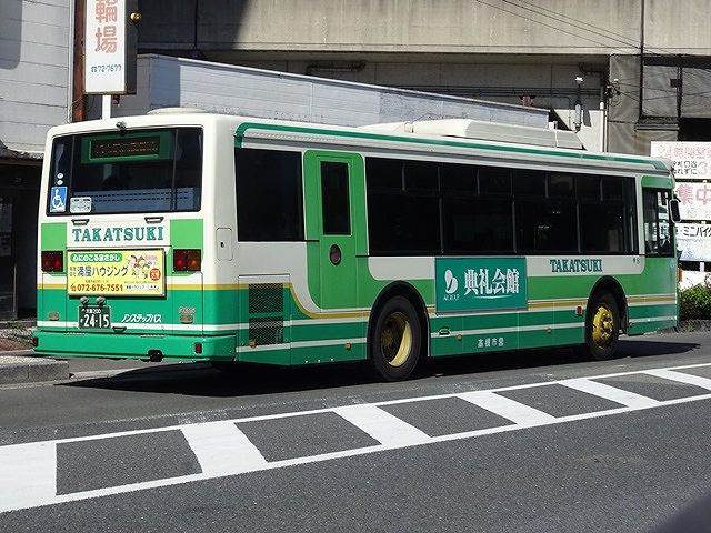 細々と更新しています						 2018年から主だった更新を別ブログ(2つ目のブログ)に移しています。 こちらのブログでは残っている画像ファイルの容量を有効活用すべく、「右斜め後からの1枚」シリーズを細々と更新しています。 「右斜め後からの1枚」とは、右斜め後から記録したバス車両の画像を並べるだけというお手軽な内容となっています。多少でもお手軽さを減らすべく、その月に記録した画像をメインにするというルールを課しています。 大阪200か2415.2025年10月大阪府高槻市松原町で記録。 今回は高槻市営バスこと高槻市交通部に在籍する西日本車体製ボディを架装した、日野KVノンステップ車を右斜め後から。 高槻市交通部は西日本車体製ボディを愛用してきた事業者です。メーカー標準ボディとなったことで、日産ディーゼル車への架装がメインとなった2000年代も、日産ディーゼル車だけでなく、いすゞ・日野の路線車も西日本車体製ボディで導入していました。 高槻市交通部の大型・中型路線車の塗装は、1980年代半ばから2015年までU字のような形の黄緑色が目立つデザインを採用していました。運転席側面のU字黄緑色帯は運転席横の窓から非常口扉あたりまでのびています。 大阪200か2415.2025年10月大阪府高槻市南松原町で記録。 左斜め前からの画像。 車内はノンステップ部の運転席側は前向き1人掛けシート、扉側は前輪タイヤハウス部に前向き1人掛けシート1脚と横向き優先座席、中扉より後は両側とも2人掛けシートという配列です。国土交通省標準仕様ノンステップバスなので、青系のシートモケットを採用しています。 高槻市営バスは中乗り・前降り、運賃後払いの均一運賃制を採用していますが、ごく一部に整理券を発行する対キロ区間運賃を採用している路線もあります。対キロ区間運賃採用路線は限られるため、整理券発行機は一部の車両しか搭載していません。画像の車両は整理券発行機を装備していない均一運賃路線用車両ですが、中扉ステップ部にはICカード用読取装置と整理券発行機の搭載も可能な台座を装備しているのが高槻市交通部らしいところです。 さて、扉側のU字黄緑色帯の塗装は前扉から中扉まで、運転席側と比べると半分くらいの長さとなっています。この塗装が登場した1980年代半ばの高槻市営バスは前後扉車を標準採用しており、U字黄緑色帯は乗降扉を目立たせる意味もあったようで、前扉から後扉までのびていました。1996年にワンステップ車導入で前中扉車が登場すると、U字黄緑色帯は乗降扉を目立たせるため中扉までの長さとなりました。高槻市営バスのように扉側と運転席側で帯の長さが異なる塗装デザインもあるので、やはりバスの写真は出来る限り両側とも撮っておきたいところです。 PR     |