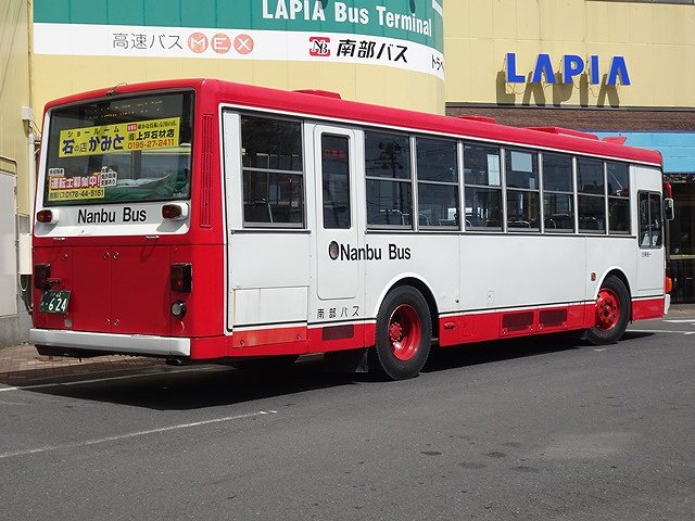 「右斜め後からの1枚」とは、右斜め後から記録したバス車両の画像を並べるだけというお手軽な内容となっています。多少でもお手軽さを減らすべく、その月に記録した画像をメインにするというルールを課しています。 八戸22か624.2026年4月青森県八戸市「ラピアバスターミナル」で記録。 今回は南部バスこと岩手県北自動車南部支社に在籍する、いわゆるキュービックボディを架装したP規制車のいすゞLVを右斜め後から。