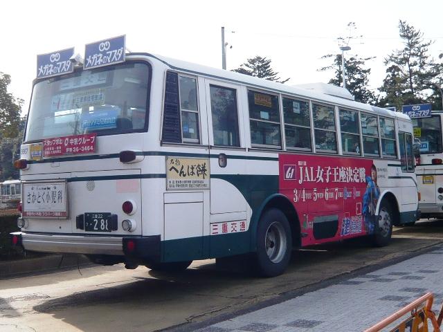 バスを知った風な顔で書いているこのブログですが、 実はそれほど詳しいわけではなく、まして三重交通に 関しては全くの門外漢でして「多度大社」や「美鹿」が どこにあるのかすら見当つきませんでした。 コメントにあります「巾は通常で6mのバス」ですが、 参照したニューハンドブックやバスラマで該当するよう な車両が見当たらず、ひょっとしたら7mのエルガミオ のことでしょうか。違ったらすいません。 棒ギア(パワーシフト)は時が経つにつれ、オプション設 定となり、低床化や部品共通化で乗合車に関しては設定 自体が無くなったものもあります。三重交通に限らず、 棒ギアの乗合バスはいずれ消え行く存在になるのかもし れません。