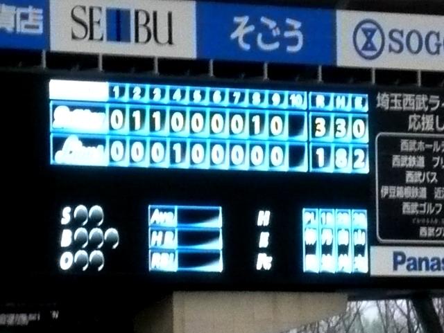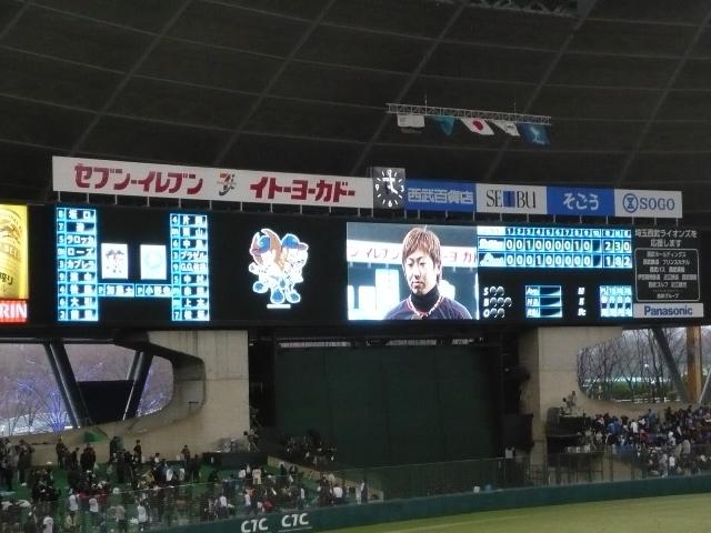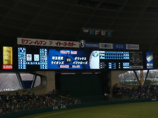 今日から2008年のパシフィックリーグ公式戦が始まりました。ここ数年3月開幕がデ フォとはいえ、20日は早すぎです。それでもリーグ史上3番目というから驚き(日刊ス ポーツによれば、1950年3月11日・1964年3月14日)です。 開幕を祝うかのように雨天でしかも寒い。絶好の猫屋敷観戦日和です。厚手のジャンパ ーに手袋は必須です。あとは首に巻くもの・・・ということで、猫屋敷では開幕3連戦来場 者に「ヒートアップマフラー」(アクリル)をプレゼント。貰うのに大行列でしたが。 開幕戦オーダー。このあと松崎しげるによる国歌独唱が開幕を盛り上げます。しかし黒い。 そして寒い。 西武選手の紹介アナウンスは、はっきり言ってラ~イオ~ンズで有名な戸谷真人。懐 PR