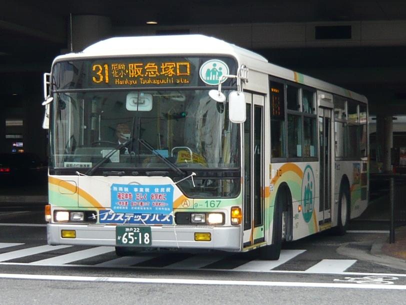 まだやってたシリーズ。今回は尼崎市交通局です。 局番:6-741.U-UA440HAN(95年車)。貸切表示。 今回見たなかでは最古参の58MC。ボディも大分お疲れな様子。尼崎競艇送迎バスで 運用中でした。小生的にはおそらく最初で最後の記録となるでしょう。 7-155.KC-MPMP617K(96年車)。 非公式側からですがふそう。尼崎市営バスは導入年度とメーカー毎に区分された番号の 局番があるので、西工初心者にとっては有難いもの。 今回見た58MCは以上。UDが見れたから良しとしないとバチがあたります。 型式・年式は「尼崎市交通局在籍車両一覧」(2000)『バスラマインターナショナル』, No.58,ぽると出版と年鑑バスラマ各号のノンステップバス導入状況一覧を参照しました。 せっかくなので58MC以外のノンステを。 9-167.KC-MP747K(98年車)。 ふそうのノーステップバス。 13-757.KL-UA452KAN改 間が開きますが01年度に導入されたUDノンステ。早くから今では当たり前となったワンス テップベースのノンステ車の導入を行いました。画像の車両は増備分ですが。 15-834.KL-HR1JNEE。 日野のノンステといえばHR。BRCも見かけましたが少数派の様子。中扉にあまっこ。 17-771.PK-JP360NAN。 05年度導入のJP。日野のエンジン供給を受けたことで、HRを西工で作るとこんな風に なるんだろうなと思ってみたり。中扉にあまっこ。 PR