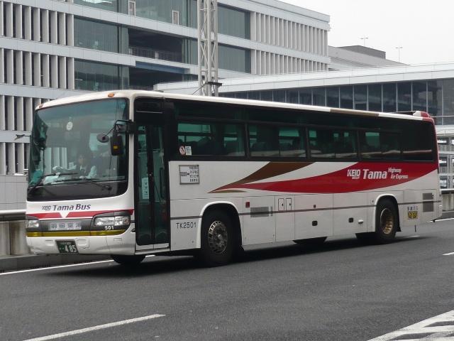 羽田空港で見たバス第二弾です。第一弾に比べると今回のほうが分量大目と、バランス 感の悪い構成となっております。今回は参考文献のあるものは型式・年式を紹介。 H5551.(05年車)。 羽田空港のリムジンバスといえば京浜急行バスも東京空港交通と並んで複数路線を 展開しています。京浜急行のリムジンバスといえばこの型、エアロバス。折戸が多いで すね。京浜急行バスの社番は百の位が登録年(西暦)となっております。 K5678.(06年車)。 路線によっては直結冷房トイレ付も。画像はPJのエアロバス。 H2825.KC-LV781R1(98年車)※1。 いすゞガーラはふそうに次いでの存在。ただしガーラの折戸は少数派。 H2345.KL-LV781R2(03年車)※1。 ということでスイング扉。 K5808.BKG-MS96JP(08年車)。 08年新車より、エアロエース。颯爽と通り過ぎていったためピンボケ・・・。別なところに 気を向けていてはダメだと実感。今のところエアロエースは本型式のみなので判別楽。 K60053.KL-RU4FSEA(00年車)※2。 京王電鉄バスグループも京王沿線から多数路線を開設しています。画像は調布駅行き の高床ⅡなセレガR。 TK2501.KL-RU4FSEA(02年車)※2。 八王子・高尾駅より羽田空港路線を運行中なのは西東京バス子会社の多摩バス。 こちらもセレガRの高床Ⅱ。同路線は京王バス南も担当し、東京空港交通と3社共同。 T380.KL-MS86MS(02年車)※3。 渋谷路線は東京空港交通、京浜急行バス、東急バスと3社で共同運行。東急バスは弦巻 営業所担当ということでトランセ。ケチ王に負けずこちらもスタンダードデッカなエアロバス。 NI3728. 神奈川方面は新羽営業所が担当。車両は代替され新セレガが活躍。 3024.KL-MS86MS(03年車)※4。 新横浜・たまプラーザ方面は川崎鶴見臨港バスも共同運行に加わります。鍍金のホイル キャップ付がおしゃれなスタンダードデッカ。 6562. 神奈川県の自動車免許でおなじみ二俣川へは京浜急行バスと相鉄自動車が共同運行。 相鉄自動車はひとまず早く新グループマークを表示。次はグループカラー塗り替えということで>妄想 ひ850.KC-MS829S(99年車)※5。 神奈川中央交通平塚営業所担当は本厚木方面路線。こちらも京浜急行バスと共同運行。 神奈中の平塚といえば平塚駅ではなく田村車庫!トイレ無しスタンダードデッカ。 型式・年式の参考文献 ※1)『BJハンドブックシリーズR55 京浜急行バス』(2005),BJエディターズ ※2)『BJハンドブックシリーズR62 京王電鉄バス・西東京バス』(2007),BJエディターズ ※3)東急バス/東急トランセ型式別在籍車両一覧」『バスラマインターナショナル84号』 (2004),ぽると出版 ※4)「川崎鶴見臨港バス在籍車両一覧」『バスラマインターナショナル105号』(2008),ぽると出版 ※5)『BJハンドブックシリーズR57 神奈川中央交通』(2006),BJエディターズ PR