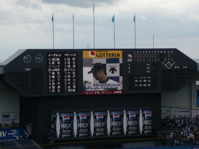 表題の通り、マリンスタジアムで観戦してきました。 楽天 1-6 ロッテ 楽天田中、ロッテ清水直の投げ合いでこの試合展開になるとは、正直思っていません でした。清水直で連敗が止まるとは、今年はまさにエースの活躍。石垣島に行ってない から調子が良いのではと問題発言。 それにしても本来4番手キャッチャーの金澤をスタメンで使わざるを得ないこの状況。 5番手の新里も待機中ということで、二軍は誰がマスクをかぶるんでしょう。こんなこと なら辻返して貰えませんか>コリンズ監督。 ロッテ球団生誕40周年記念、ヴェテランオリオンズカードが欲しくて観戦しましたが、 カードも手に入れ、勝ち試合も観戦し、末等鴨川シールも当たると珍しく上々な一日でした。 もはや伝説的な「テレビじゃ見れない川崎劇場」や千葉テレビで94年放送されていたマリ ーンズ応援番組で流れていたCMも観れたことも収穫。ぜひ最後に八木沢監督メンコ登 場なCMも放送してほしいもの←監督休養で早々にお蔵入りした幻ともいえるCMです。 最後は共感されない古いファンの戯言です。 PR