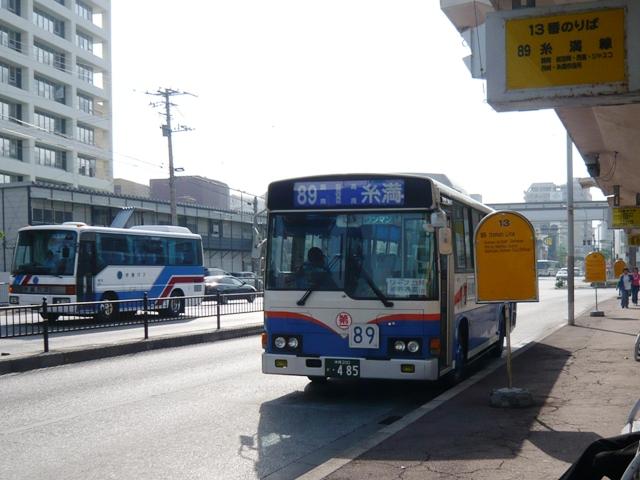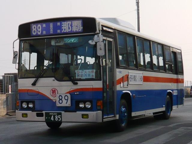 沖縄で見たバスシリーズ。沖22ナンバーを引き続き取り上げるのも芸がないので、今回 は若干乗車記も入れつつ南部糸満BTで見た琉球バス交通画像よせ集め。 那覇BTから糸満BTへは89番・34番・35番といくつかの路線が出ています。那覇バスも 含めれば糸満へは時刻表を気にしなくても良い本数があるといえます。今回小生が利用 したのは糸満への路線では最も本数が多く、琉球バス交通と沖縄バスで共同運行してい る89番糸満線です。 那覇BTにて。ちなみにこの乗り場から糸満BTへ行く人はあまりいません。路線図などを 見ると分かるのですが、89番は那覇BTから開南・与儀十字路・壷川とぐるっと回る経路を とり、画像反対車線にある旭橋(那覇バスターミナル)停留所に到着するからです。運転手 さんからも一応確認がありましたが、小生はヒマ人なのでそのまま乗車。しかし乗車日は与 儀十字路へ出る道が渋滞しており、旭橋へ戻るまで随分時間がかかったことは内緒です。 89番はいくつかの経由路線がありますが、国道331号線を南下し糸満へ向かいます。 糸満市内でいくつかの交差点を曲がると終点糸満BT。前には自動車学校のあるだけの 突き当たりといった所。画像建物の左側が沖縄バス、右側が琉球バス交通が使用。降車 は右側の琉球バス交通側、乗り場は画像左側、沖縄バス側の赤い自販機がある所にな ります。沖縄バス側は最近外壁の塗装工事を行ったようで、琉球バス交通側と比べると 随分差があります。たまたま糸満BTではこういう状況になっていたんですが・・・。 ということで、ここからはいつも通りのよせ集め。 琉球バス時代末期から南部支線を中心に中型車で代替が進められた影響で、琉球バス 交通では比較的中型車が多い営業所ではないかと思います。 沖縄200か473. 前後折戸のRM。相変わらずヘボブログなアレ画像で失礼します。 89番も琉球バス担当便では中型も運用に入るようです。 沖縄200か485. こちらは後扉引戸・全引窓の日野中型。一時期全国的に中古バスを賑わせた南海中古。 沖縄では日野車を中心に移籍例が見られます。 沖縄200か581. 琉球バスでは糸満営業所に730車が割と最近まで残っていましたが、すでに全車引退済。 こちらは最近西武バスから最近移籍してきた短尺中型車。 リヤしか撮れなかったら載せるなよ・・・という意見には聞こえないフリ。 沖縄200か100.P-HT233BA(87年車)※。 もちろん大型も在籍しています。前後扉で前部側窓に特徴を持つ神戸市からの移籍車。 この他、京急からのスーパーワイドドアなLVなども見かけましたが、これはまた後日。 元団地交通なRJが見られなかったことが残念でなりません。 参考文献 ※)「琉球バス車両一覧」『バスマガジン2号』(2003),三推社/講談社 PR
