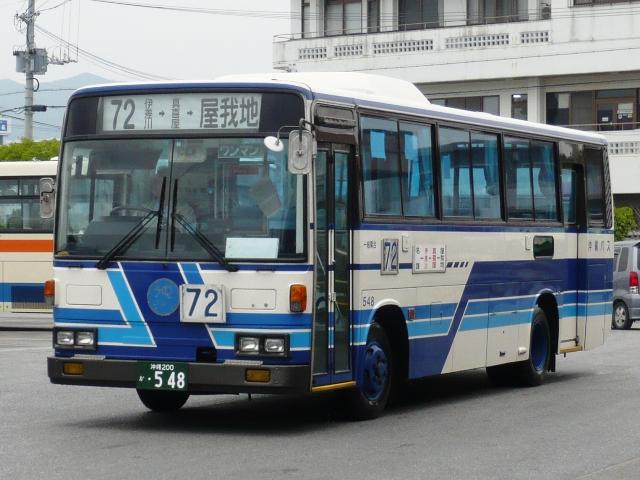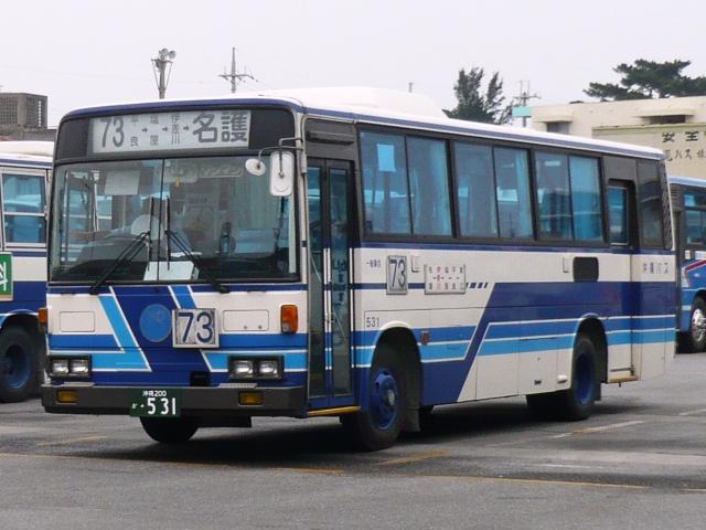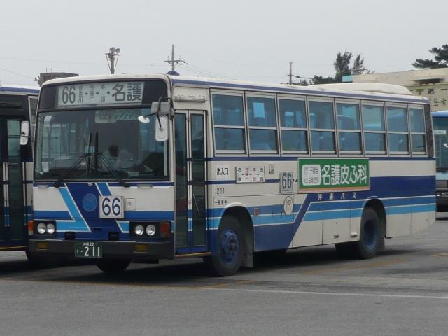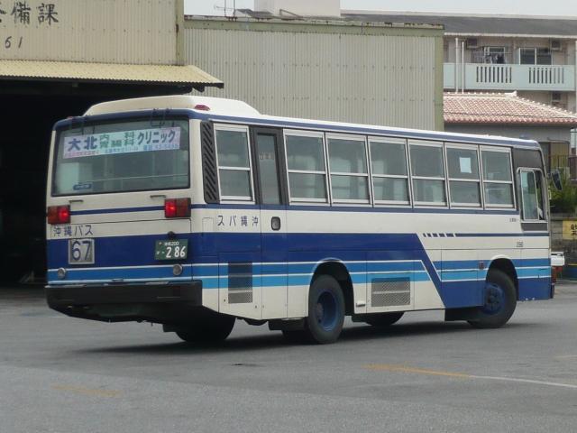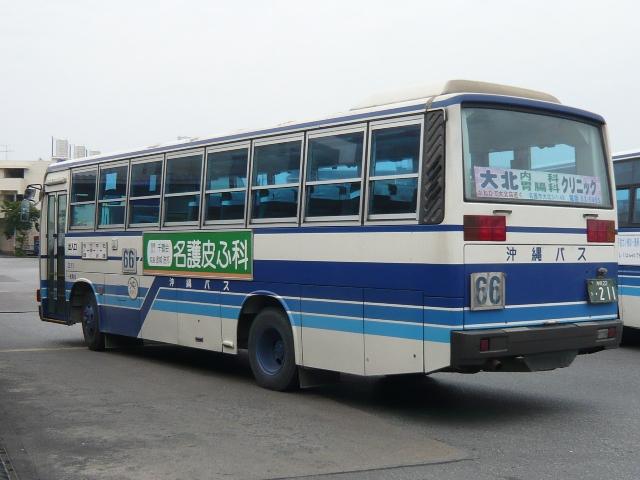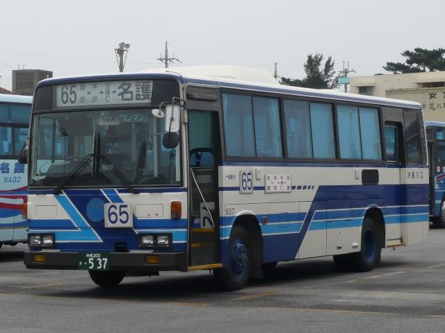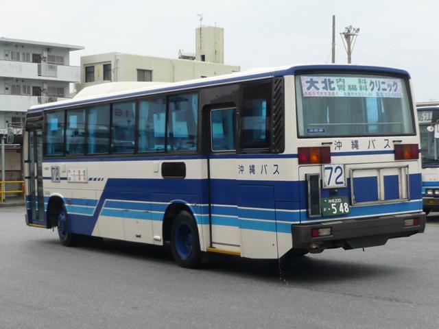しばらく続く沖縄で見たバスシリーズ。今回は、沖縄バス名護所属の主に北部支線で 使用される中型バスです。 沖縄22き211.P-MK117J(90年車)。 沖縄バス生え抜きの中型車。バスラマによれば、沖縄バス初の中型車とのこと。本部半 島1周の65・66番など、琉球バス交通と共同運行の北部支線ですが、沖縄バスは中型 がメイン。逆に琉球バス交通は大型移籍車がメインとなっており、糸満と正反対です。 なお、型式・年式は、「沖縄バス在籍車両一覧」『バスラマインターナショナル106号』 (2008),ぽると出版を参照しました。ここしばらくはお世話になりっぱなしの1冊。 中型車の並び。左は運賃小窓跡から分かるとおり、元神奈中のトップドア車。 沖縄200か286.P-MK117J(89年車)。 リヤ。リヤガラス上部に神奈中を感じさせるアイテムが残ります。 沖縄200か531.U-MK117J(91年車)。 今回の旅の裏テーマ「千葉県内移籍車めぐり」。元千葉シーサイド(東洋バス)から移籍 のMK117J。運転席側の1人がけ座席を2人がけに改造して使用中。ブルーなガラスが 沖縄に合います。 沖縄200か537.U-MK117J(91年車)。 沖縄200か548.U-MK117J(91年車)。 計3台が移籍した模様。千葉シーサイドバス末期のサビサビ状態で走っていた頃が嘘の ように、見違えるほど綺麗になっていました。末永い活躍を期待したいものです。 PR