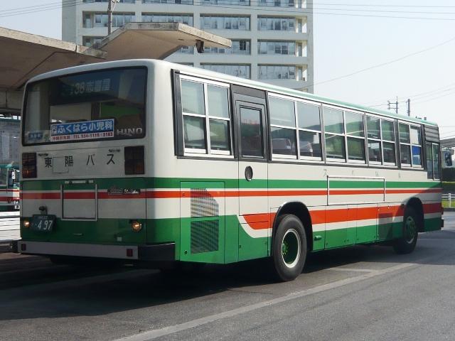 まだ続いている、沖縄で見たバスシリーズ。いったい沖縄で何枚写真を撮ってきたのか、 と呆れさせます。今回は東陽バスの沖縄22ナンバーまでの画像よせ集めになります。 なお、東陽バスについての型式・年式についての資料を持ち合わせておりませんので あらかじめご了承願います。 沖22か1536. なんとビックリ、那覇BTに730車。小生の沖縄到着を祝うかのように>違 運用に入って いました。諸事情で乗車は断念しましたが、以後滞在期間中730車は馬天でお休みと いうことは言うまでも無く。みすみす乗車チャンスを逃す悔やまれる結果に・・・。 沖縄22き206. 東陽バスは側面窓下のボディ部に行先表示機が付いている車両を多く見かけました。 冷房車の文字も泣かせます。 沖縄22き295. このあたりの自社発注乗合車側面窓は青の色付ガラス。 沖縄22き340. その後、サッシ窓がデフォとなるのは本島4社変わらず。ブルーリボンなリヤに感動。 沖縄22き413. 沖縄22き430. リヤからの画像のみですが、スモークな全引窓に自家用臭を感じます。仕様に試行錯誤 が見られます。 沖縄22き497. 沖縄22き498. 登録番号1番違いでこの仕様差。後扉を埋めた感じがするのですが・・・どうなんでしょう。 沖縄22き536. 何を思ったか、いすゞキュービックを中古導入。かなりイレギュラーな導入の様子。 ちなみにこの日は馬天で730車と並んでお休み中でした。 沖縄22き567(右)と沖縄200か58(左). こちらは日野ですがボディが・・・。この2台もイレギュラーな感。 那覇の予備車となっている模様で、滞在期間中に動いた様子はありませんでした。 PR