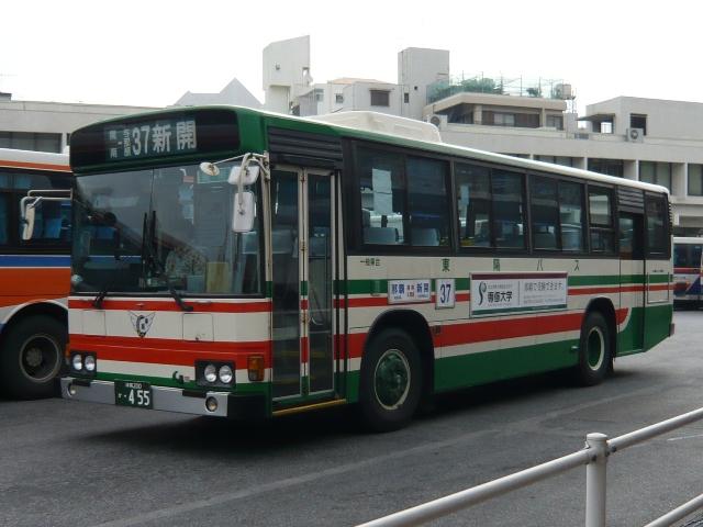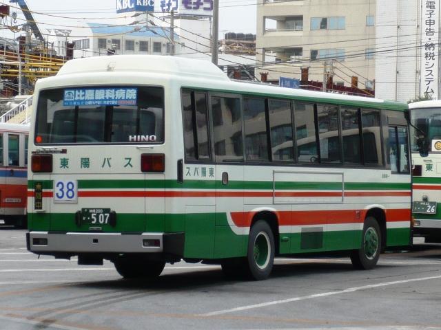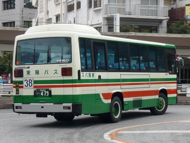 沖縄で見たバスシリーズ。今回は東陽バスの2回目、沖縄200かナンバーの乗合車画 像よせ集めになります。 なお、東陽バスについての型式・年式についての資料を持ち合わせておりませんので あらかじめご了承願います。 沖縄200か80. 一時期移籍車導入はいすゞやら富士やら西工やらと迷走気味でしたが、日野の日野ボディ が導入条件になった模様。趣味的な面白さは減りましたが、全国各地の日野ボディ車が見 本市さながらに集まります。この時期の沖縄は横浜市営からの移籍車がブーム、ということ で東陽バスには当然HT。扉埋めが半端な仕事でないのが東陽バスクオリティ。