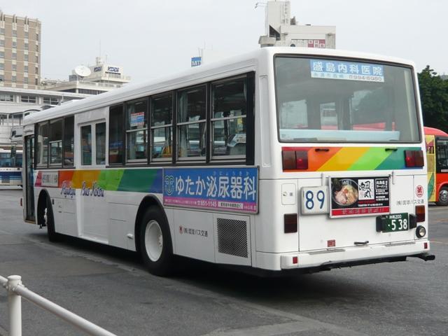 沖縄で見たバスシリーズもいよいよ佳境。そもそもGWに行った時に見たのですから、随 分引っ張りました。今回は第一交通グループ後の琉球バス交通移籍車の主流となりそう な京浜急行バスからの移籍車画像よせ集めになります。 今回、型式は『BJハンドブックシリーズR55 京浜急行バス』(2005),BJエディターズ を参照しました。 沖縄200か535.U-LV324N。 まずはスーパーワイドドアなキュービック。中扉部にシートがあるのが分かります。 沖縄200か538.U-LV324N。 京急からは何とビックリふそうも移籍してきた模様。那覇BTの反対車線を走り去っていき ました・・・orz。しかし、いすゞやふそうが入るとは琉球バス時代には考えられません。 沖縄200か553.U-HT2MMAA。 日野ワンステ。この車両は前部行先表示横に支払方法が残り、京急臭アップ。 沖縄200か554.U-LV324L。 キュービックのワンステ。ワンステが一気に増えました。 沖縄200か537.U-HT2MMAA。 こちらは支払方法表示窓が黒くなっています。車両によっては表示幕を外し、内側が透けて いるものも見られます。 第一グループ入りを機にとにかく車両代替を進めていくという気合を感じてなりません。京急 で2006年上期に廃車された乗合車両のほとんどを購入したことから、いすゞやふそうが登場 したようです。京急での廃車は、通常しばらく営業所の片隅に集められ、早いうちに人知れず 車庫から姿を消すことが多いのですが、これらは2007年の春頃まで長いこと放置されてい ました。 これまでの廃車と違った動きから、今後京急の営業所に長いこと廃車車両があれば・・・、 ということなんでしょうか。まあ最後はマニアの勘ぐりですのであしからず。 PR |