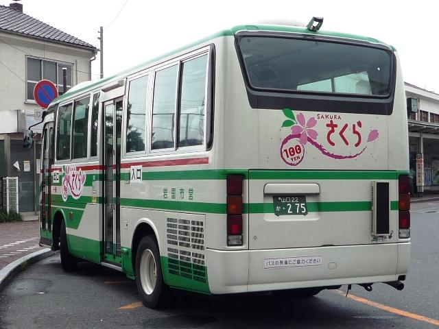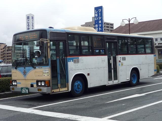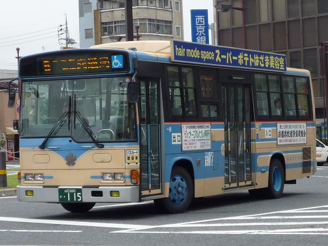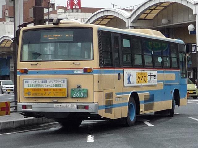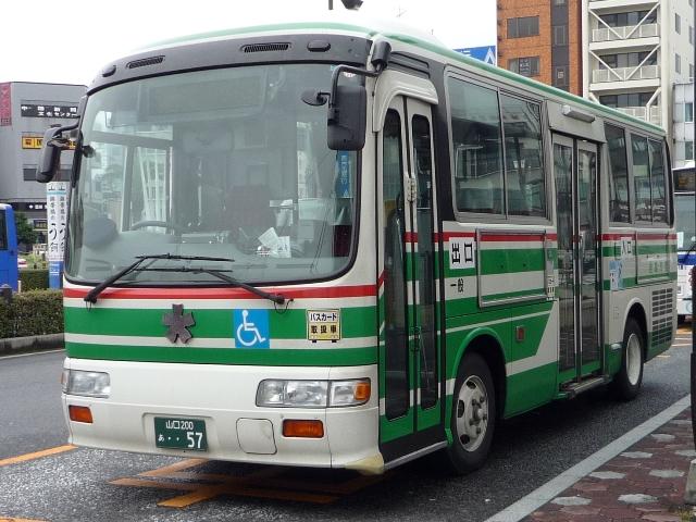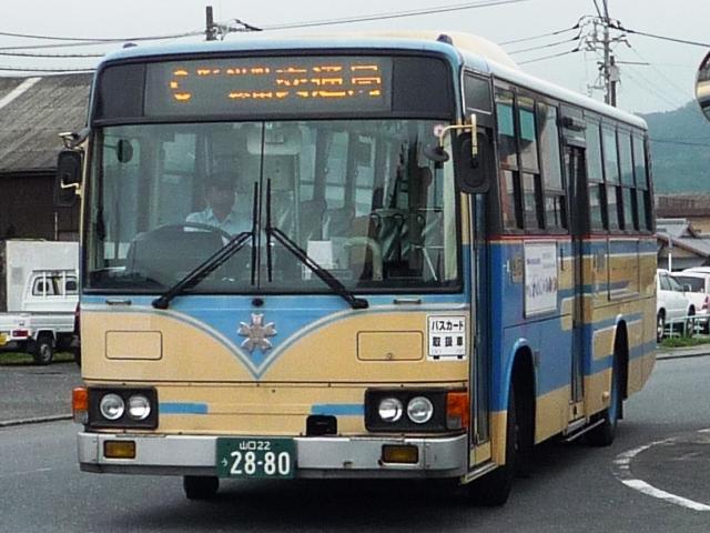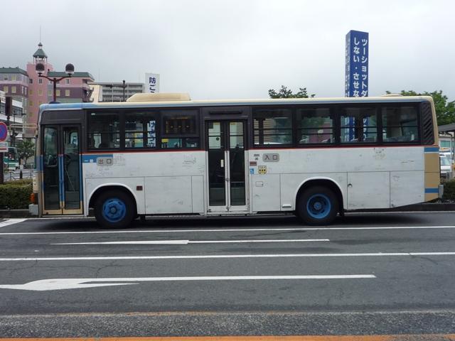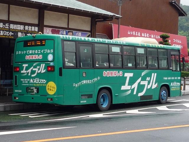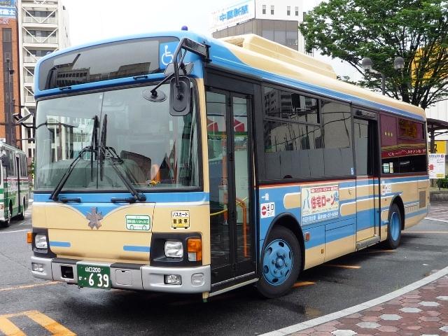 ようやく中国地方遠征(←大げさ)で撮りためた自己満足な発表企画がスタート。 広島に出かけたと書きながら、最初に取り上げるのは山口県とは。岩国駅前を中心に、 岩国市交通局のバス画像よせ集めです。 山口200か115. 岩国市営バスの路線といえば中型。ということで見かけたバスの大概はこれ、RJ。 屋根上の広告がポイントのようです。スーパーポテト。 山口200か50. フルラッピングバスもちらほら。リヤLED行先表示部分を除いて窓にもラッピング。 山口200か639.PDG-KR234J2(08年車)※。 今年の新車。HR9mの販売中止に伴い順当な投入、1つ目KRノンステ。 ※:型式は「2007年度スーパーハイデッカー、ノンステップバス採用実績」『バスラマ インターナショナル107号』(2008),ぽると出版を参考にしました。