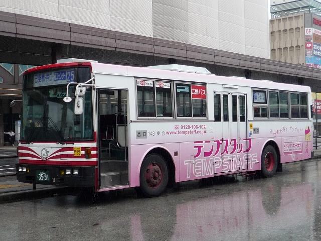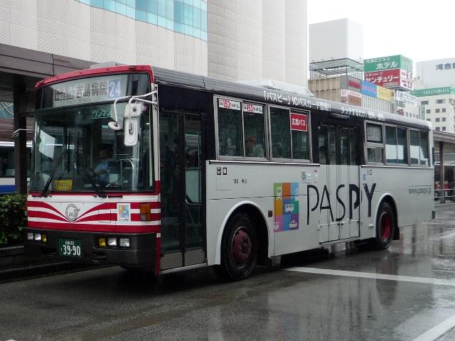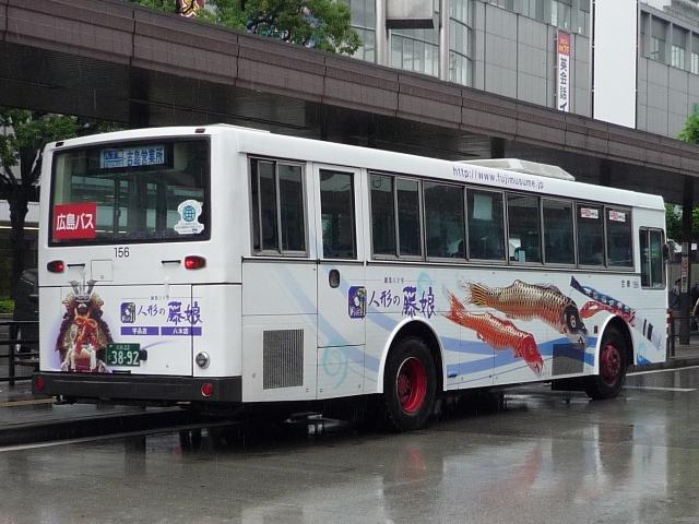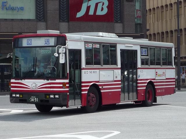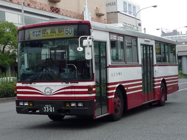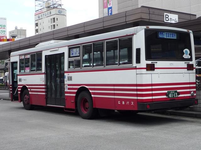 中国地方遠征(←大げさ)報告、第4弾。今回は主に広島市内を中心に路線展開する 広島バス編のその1です。内容としては自社発注のUD、富士重工7Eボディの画像よせ 集めになります。広島交通が1エントリだけだったことに比べると、随分細切れです。 社番:140. 広島バスの社番100番台は自社発注のUDになります。全引窓に中4枚折戸と広島バス の一般的な仕様。紹介としてはこれだけなんですが、せっかくなので。 社番:128. 広島バスは路線によってカラフルな方向幕を使用。50号線は黄色。 登録番号から、型式はUA33Lあたりではないかと推測。 143. ラッピングバスの例その1。 156. 非公式側。米粒テール。 158. 一部路線はクマでお馴染み「PASPY」が利用可能。 166. ということでラッピングバスの例その2。PASPY。 171. リヤテールランプは大型化。 移籍車やワンステップバス以後は次回以降。 PR