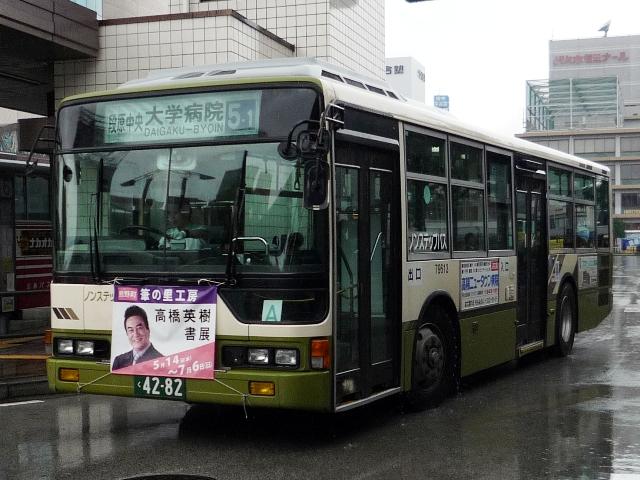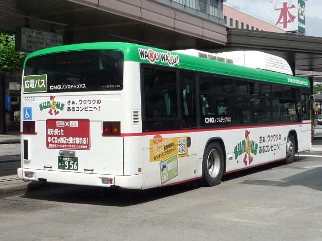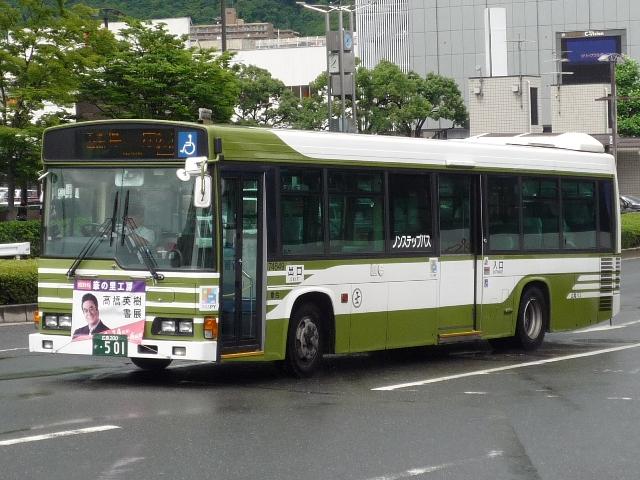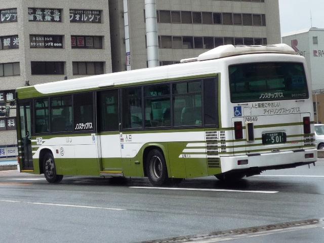 広島で見たバスシリーズ。前回の続きで、市内線で使用されているノンステップバスの 画像よせ集めです。社番についてのおことわりは前回から引き続きということで。 なお今回は、年鑑バスラマ各号掲載のノンステップバス導入一覧を参考に型式を記載 しました。 79613.KC-MP747K。 広島のノンステのはしり、MP。これまでの塗装と全く異なるデザインで登場、同時期に色違 いで広島バスにも登場。 74649.KL-HR1JNEE。 広島にも中型ロングノンステ。 54686.PJ-KV234N1。 エルガ顔のブルーリボンⅡ。 74708. 最近の新車、当然ながら1つ目。 66667.KL-LV280N1改。 こちらはBRⅡではなくてエルガ。クーラー以外違いが分からず。 66688.PJ-LV234N1改。 66683.PJ-LV234N1改。 CNGなエルガノンステも活躍中。これらが赤バスの5Eと並んだりするんですから、恐るべ し広島と思います。 PR