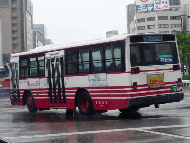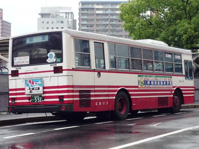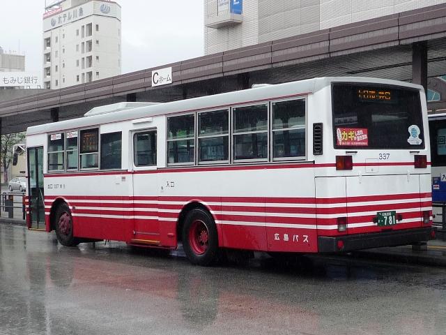 広島で見たバスシリーズ。ただ画像を貼っているだけな不毛企画と遅まきながら気づい てきました。が、今更やめられず。今回は広島バスの移籍車両画像よせ集めです。 社番:312. 社番:328. 都営バスからの移籍車。これらでななメトロ、ブルメトロを置き換えていったものかと。 706. 都営バスからはUDとふそうが順当に入りました。まずはエアロスターM。 707. そして角目・逆T窓のエアロスターK。グリーン某な都市新バスからの移籍車も在籍。 画像は撮れませんでしたが、通常仕様のエアロスターKも活躍しています。 340.U-UA440LSN。 337.U-UA440LSN。 知事の逆鱗に触れ、都営バスからの移籍車がストップ。ということで、西武からの移籍車。 一部の車両はLED行先表示となりました。 ブルが最後の活躍をしていたマツダの工場送迎用にも光が丘近辺で使われていた西武総 合企画の前中4枚折戸・エアサスと絶妙な7Bに置き換えられた模様。 PR