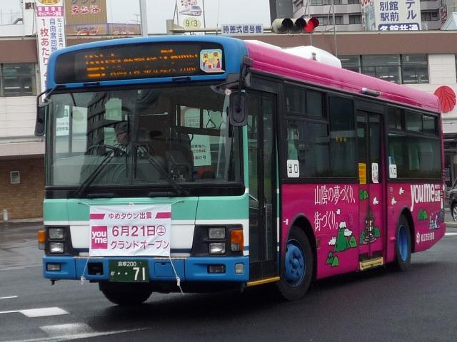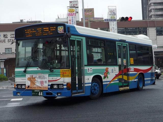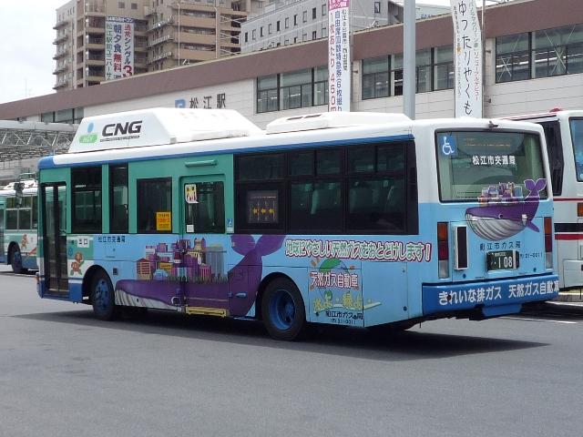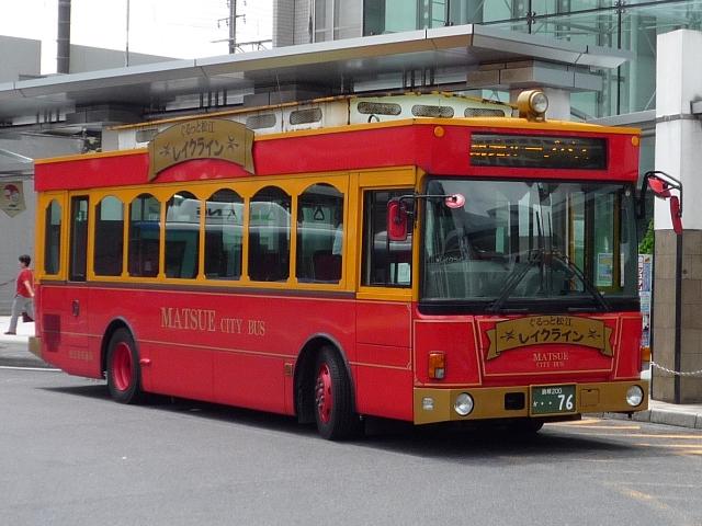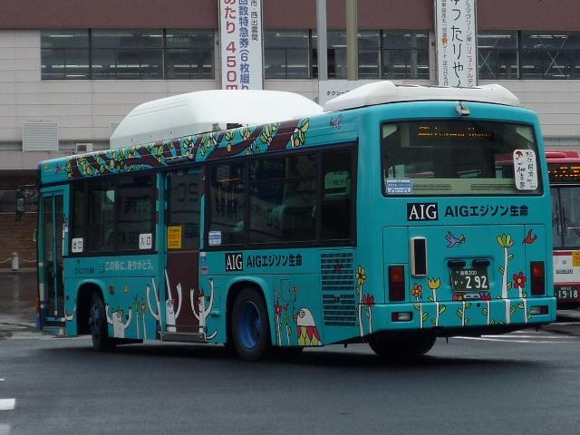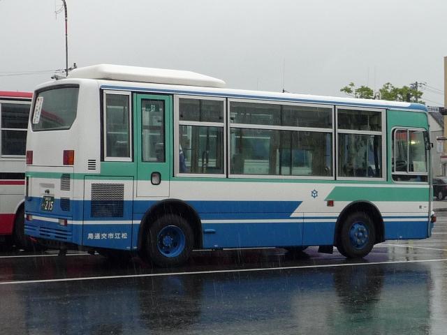 松江市交通局の島根200ナンバーの車両画像よせ集めです。 なお、型式・年式は「松江市交通局在籍車両一覧」『バスラマインターナショナル 59号』 (2000),ぽると出版と『年鑑バスラマ』各号の「ノンステップバス導入一覧表」を参照し ました。 島根200か44.KK-HR1JKEE(00年車)。 ふそう一辺倒も今は昔、ノンステップバスは年毎に納入メーカーが異なり、4メーカーが 揃うことになります。ということで日野はこれ、HR9m。 島根200か71.KK-LR233J1改。 続いて2000年から01年にかけて導入されたいすゞエルガミオノンステ。もはや何でもあり。 部品など整備は大変そうです。この車両は近隣の大型商業施設のラッピング。よだれかけと いい、ラッピングといいものすごい宣伝費用です。 76.KK-LR233J1J1改。 このタイプの特装車もエルガミオベースと、しっかり低床化に貢献しています。現在はレイ クラインで活躍中。 108.KK-RM252GAN(02年車)。 久々登場のUDはなんとCNG&西工。CNGらしいスポンサーなラッピングバス。 166.KK-RM252GAN(03年車)。 斜めがちで失礼、CNGの増車が続きます。こちらはラッピングを剥がし、一般塗装で活躍。 208. バスラマでは登録番号の頃に導入されたエルガミオは見当たらないんですが。年式・型式 は申し訳ないですがパスということで・・・。 215.KK-ME17DF(04年車)。 トップドアMJの代替で登場MEノンステ。ダウンサイジングもここに極まり。 292.PB-HR7JHAE(06年車)。 今のところの最新車、HR9mなCNG。国交省仕様ノンステです。CNGは後付改造らしく、 『年鑑バスラマ』ではCNGの方に掲載されず(判別に苦労しました)。 そろそろエアロスターKなMMの代替が気になるところです。一体何が入るのやら。 長らく続いた、小生6月の中国地方遠征で撮りためた画像発表シリーズも今回で終了です。 天候には恵まれませんでしたが、松江や米子と山陰地方の一部にも足を運ぶことが出来て 小学生時代からの一畑電車乗車も叶い満足した内容だったと思っています。 これから、通常通りまばらな更新となると思いますが、お付き合いのほど宜しくお願いします。 PR