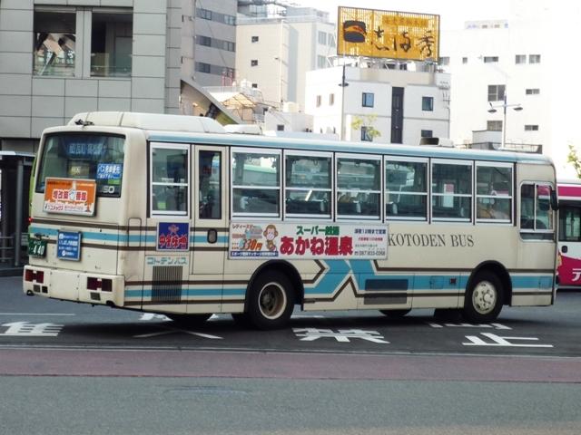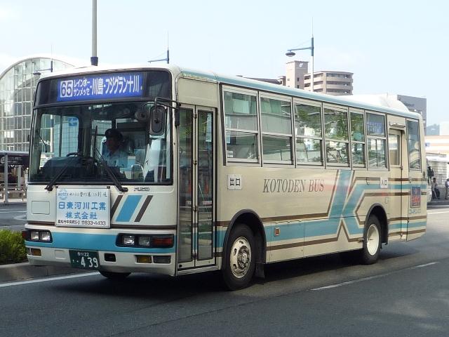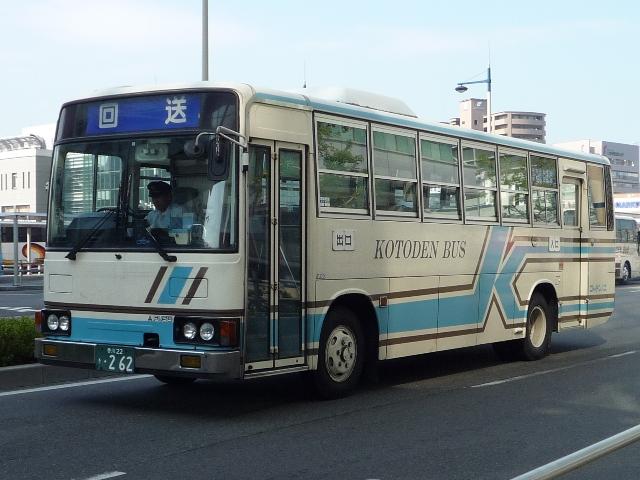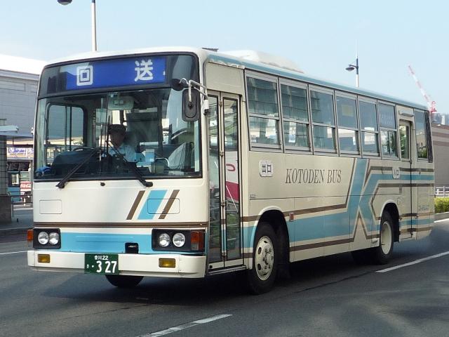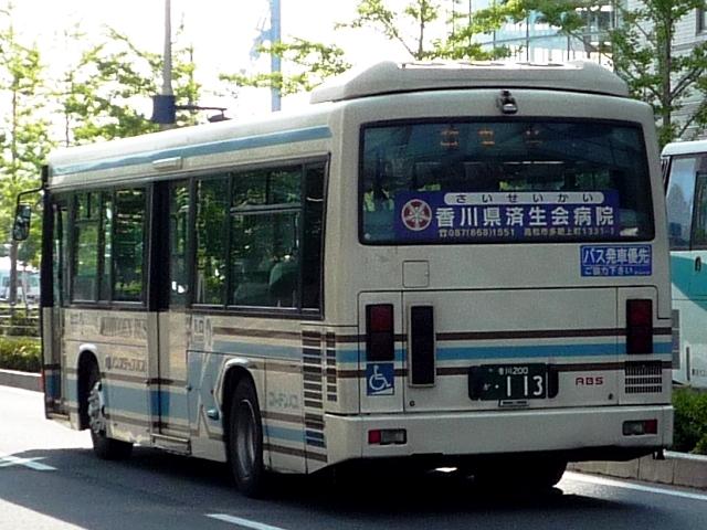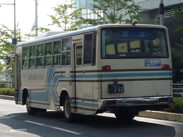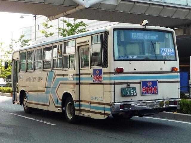広島市民球場で観戦がメインでしたが、また広島に行くのなら・・・ということで四国へ足を 延ばしました。好天に恵まれすぎて光線が強く、それでなくても見るに耐えない画像がさら に酷いことに。今回は高松で見た「ことでんバス」編その1としてコトデンバス塗装の車両 画像よせ集めです。 なお、ことでんバスの型式・年式に関しては、手持ち資料が無いため省略させていただきま す。あらかじめご了承ください。 香川22き256. 今回見た、ことでんバスの中では最古参のナンバーなMK。鍍金のバンパーが時代を感じさ せます。コトデンバスのオーソドックスな車両といえます。 香川22き262. こちらは正面に広告看板が無いタイプ。やはり鍍金バンパー。 327. バンパーが車体色に変わったMK。 439. 440. ボディが変わったMK。コトデンバス末期にかけて路線バスの新車は中型のみだったようで す。コトデンバス塗装の大型車は朝日町の車庫でお休み中のエアロスターKくらいしか見る ことは出来ませんでした。 566. フロントバンパーにドア開閉の蓋がついていることから、KC代のMKでしょうか。 609. このあたりが前後扉での導入の末期ではないかと。それにしてもコトデンバスの路線車が ふそうメインであったことがよく分かります。 香川200か113. コトデンバス末期に登場したノンステは、なんと日野。「ノンステップバス」表記も誇らしげ。 おそらく最期まで残ると思われる「コトデンバス」塗装車ではないかと。 PR