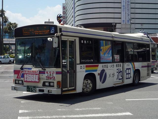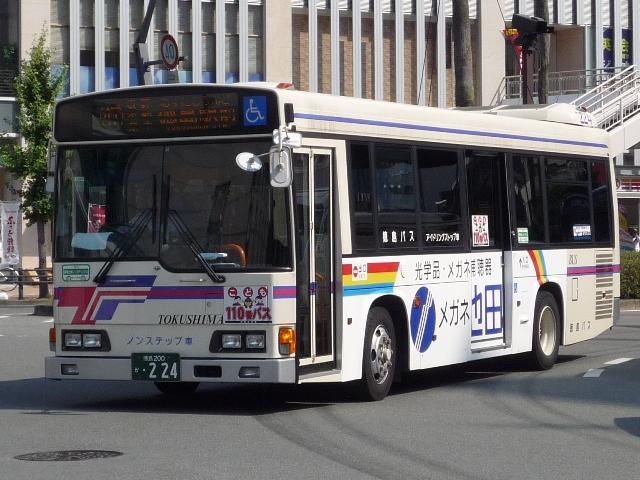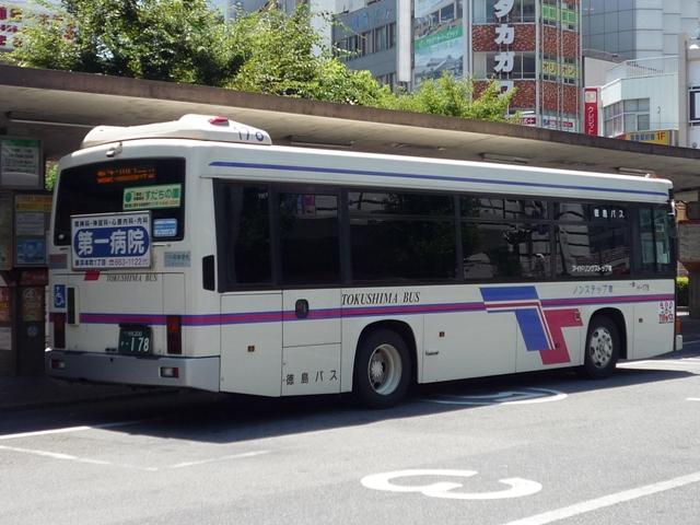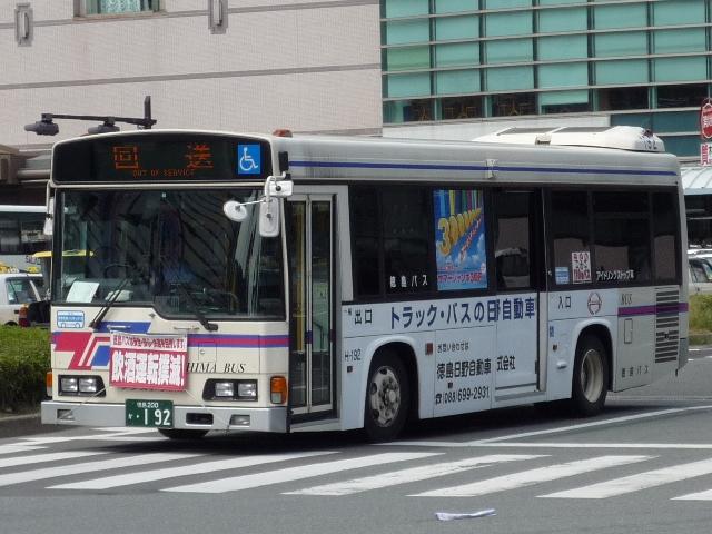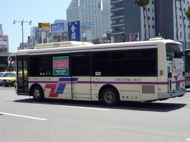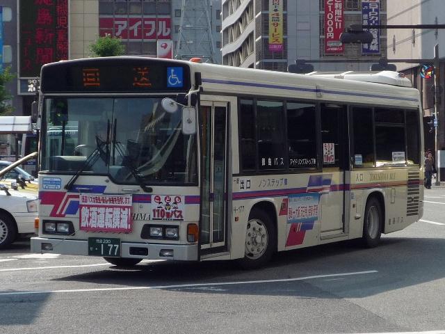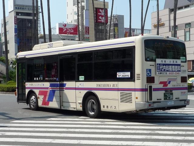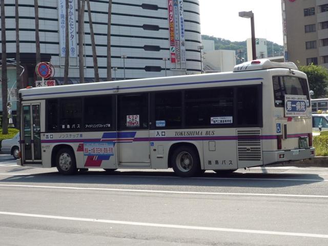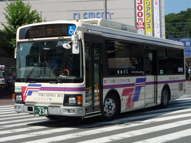 徳島バス画像よせ集め編。その2として、前回の続きで日野のノンステップ路線車のよせ 集めとなります。 なお、ノンステップバスの型式は『年鑑バスラマ』各号の「ノンステップバス導入一覧表」を 参照しました。年式に関しては判明したものについてのみ記しましたことを御了承願います。 社番:H-69.KK-HR1JKEE。 初登場のノンステ、長さはもちろん9mです。さすがに社番はエバポではなく、広くなった側窓 上部に移動しました。 社番:H-152.KK-HR1JKEE。 特徴的なコーナリングランプが無いHR。このあたりから無い車両も見かけるようになります。 KKのHRは全部で16台と、毎年コンスタントに入っています。 H-177.PB-HR7JHAE(04年車)。 PB車は国交省仕様ノンステで登場。側面窓配置が若干異なります。その関係で側窓「徳 島バス」表示も位置が変わります。 H-178.PB-HR7JHAE(04年車)。 お待ちかねの非公式側。別に待っていないという意見は聞く耳もたず。 H-192.PB-HR7JHAE。 ディーラーの付き合い広告の例。 H-224.PB-HR7JHAE(06年車)。 05年仕様の国交省ノンステ。 H-256.PDG-KR234J2(07年車)。 HR9mの駆け込み購入は無く、順当に登場1つ目KR。地方に行くに従い、見かける頻度が 高くなってきました>KR。メーカーによる車種統合は順調に進んでいるようです。 H-258.PDG-KR234J2(07年車)。 ちなみにKRの側面社番はエバポ上に復活。コーナリングランプもバンパー組み込みで復活。 かつてのような別付けランプの取り付けは難しそうです。 バスラマによれば日野の大型路線車や大型短尺も在籍していたようですが、ここ数年の代替 の早さを見ると既に過去帳入りでしょうか。それとも朝夕のラッシュがメインなんでしょうか。 昼しか見ていないので曖昧なコメントしか出来ないのが「よせ集め」と云われる所以。 PR