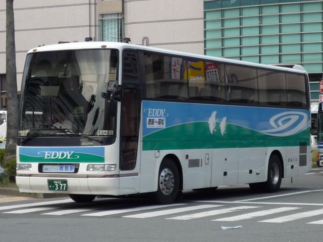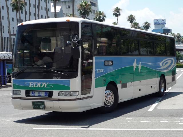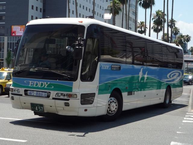 毎回同じネタで更新するなら一度にまとめろ、という考えもあるのですが。そこはご理解 H-377.KC-RU4FSCB(96年車)。 続いて日野。最近ではこんな車両も高徳特急に運用されているようです。 H-40. こちらはハイデッカーのEDDY。EDDYというと、京浜急行との共同路線という印象が強い のはひねくれマニアだから。現在では徳島バスの高速バスを指すようです。 H-140.U-RU2FTAB(90年車)。 空港特急にはこんな車両も。画像の車両は貸切色のまま活躍するセレガの転用車。2枚 ガラスがなんとも。路線車に比べるとこの手に使われる車両は随分長命です。このほか、 空港特急にはかつての高徳特急色のセレガも活躍。 徳島バス高速バス画像よせ集めと謳うくせに新セレガの画像は無しというところがヘボ ブログたる所以です。 PR