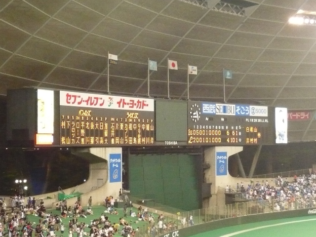 猫屋敷で観戦。 小野寺の先発画像を撮らねばと急遽思い立って猫屋敷へ。 18時に到着しましたが、すでに「投げる金剛力士」に交代していました。 吉井に続いて撮り逃しました。 見始めてからの試合経過は 和田ソロホームラン 西武の緩慢な守備でオリックス加点 追いつかない程度に西武反撃・・・カーター中継ぎってどうよ 相変わらず得点に比べて遅い試合展開にうんざり。 20時西武園ゆうえんちの花火が隙間から見えました。 今度は1塁側から見るか 西武 4-6 オリックス 2回小野寺の乱調が痛かったような試合。小野寺は2軍落ちのようですが、シー ズン当初は抑え投手だったのを配置転換でずるずるとやっていました。打たれた り、ピリッとしないピッチャーは即2軍落ちと阪神監督時代の藤田を髣髴させる伊 東監督。ぜひとも退任の際は「大田は伝書鳩以下や」といってほしいものです。 正直采配や談話を見ているとどうなんでしょうかね。選手と距離が出来ているよう な気がしますが。 PR