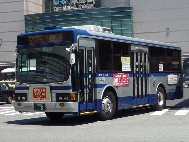 徳島で見たバスシリーズ。徳島市交通局のいすゞ車編、前回からの続きです。現在では 中型ノンステップ車の新車導入が続く徳島市交通局ですが、一時期は各地の移籍車を 導入していました。今回は移籍車の中でも割とまとまった台数が活躍する東京都交通局 からの移籍車画像よせ集めです。 なお、型式・年式は「80年代の都バス路線車を振り返って」及び「第2の人生を歩む昭和 の都バスを追え」『僕たちの大好きなバス』(2008),洋泉社を参照しました。 局番:I.394.P-LV314K(86年車)。 都営移籍車はこのあたりから入り始めたようです。中扉が引戸のタイプですから結構古参。 マユゲ付・中扉下窓無し仕様から、一見生え抜き車に見えてしまいます。 局番:I.480.P-LV314K。 側面広告車の例。生え抜き車との見分け方はバスマガでもおなじみですが、屋根上の通風 器配置。ラインクロスファンがあってよかったと思うこの頃。 I.9.P-LV314K(88年車)。 順当に中4枚折戸が入りました。 いすゞ車は基本的にキュービック限定で集めた様子。 I.41.P-LV214K(89年車)。 I.51.P-LV214K(89年車)。 都営バス移籍車からはこんなものも。都市新バス仕様のキュービック。 I.52.P-LV214K(89年車)。 せっかくなのでリヤ画像のある車両も。 ちなみにこの車両の続番号は中型ノンステップのエルガミオとなり、移籍車の導入は行わ れてないようです。 このあたりの車両も見た目は良いですが、そうは言ってもP規制車。結構古参です。今後 の代替が気になりますが、それまで路線が維持されているかどうか。路線委譲・廃止で減 車されていくのではないかと推測されます。 無理矢理いすゞ編を2回に分けたため、どちらも薄い内容となってしまいました。反省。 PR