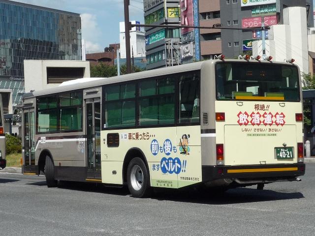 岡山で見たバスシリーズ、最終回は「日本一最低」を目指す宇野バスこと宇野自動車の 3586.U-MP218M(93年車)。 かつては「ふりがな」付のカラー方向幕も有名でしたが、残念ながら近年LED改造で消滅。 3589.U-MP218M(93年車)。 中扉横の側面行先表示もLED改造。この位置に行き先表示がある仕様だったバス会社は 少なくありませんでしたが、位置を変更することなくLED改造した例は少ないと思われます。 3932.KC-MP617M(96年車)。 KC規制車以降はエアサスで導入。中扉横に首都圏で見慣れた青いシールが・・・。対象 地域でないにも関わらず酸化触媒を取り付け環境対策もバッチリとは、さすが宇野バス。 4020.KC-MP717M(97年車)。 97年からニューエアロスターを導入。 4021.KC-MP717M(97年車)。 宇野バスでは珍しいラッピング車。 岡山200か67.KC-MP717M(99年車)。 岡山の中心街に一際目立つレトロな外観の建物が宇野バスの表町バスセンター。こういっ た一等地にバス車庫・ターミナルを持ち続けられるのも黒字企業だからこそかもしれません。 今のところ99年登録車が宇野バス最新鋭グループ。このあと約10年近く新車が入ってい ません。他事業者の古参車と同じくらいの車両が活躍しているという状況は宇野バスのプ ライドが許せないかと思われるだけに、今後どうなるのか非常に気になるとこです。 以上駆け足でしたが、徳島・高松・広島・岡山で見たバスシリーズをとりあえず完結。旅行後 「どこに出かけたのか?」、「何をしたのか?」の問いに窮したことは言うまでもありません。 PR
