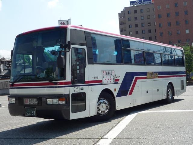 ネタが無いときは間引き更新、ネタがあれば毎日更新とある意味分かりやすいブログです。 今回は高速路線で使用される96年頃までに登録されたバス画像のよせ集めです。この 頃の会津バスでは大型貸切車に富士重工ボディを架装した車両が多く、三菱を除く3メー カーが揃っています。当時導入された貸切車の多くはグループ会社の会津タクシーに転 籍し、会津バス本体に残っているのは高速車に転用されているものが多いようです。 なお、会津バスの型式・年式の分かる資料を持ち合わせておりませんが、おおよその年式 を 「福島交通バス 在籍車両一覧」『バスラマインターナショナル56号』(1999),ぽると出 版を参考に推測しています。 福島22か2047.U-LV771R(90~91年車)と推測。 見かけた中で最古参はこのあたり。フロントマスクが角目4灯と分かりやすい7Mのいすゞ。 この車両は滞在両日ともに野沢線で運用されており、野沢線専用なのかもしれません。 昔話になりますが、小生が会津在住時代の2000年頃は野沢まで坂下・若松線という名で 一般道を坂下経由で運行する普通の路線バスでした。運賃も1000円以上かかり、日曜運 休となっていました。高速バス化後は、便数は減ったものの毎日運行で運賃も600円と利 便性は上がったのかもしれません。なお、一般道の路線は野沢から坂下営業所まで短縮 されたものの西会津町民バスとして路線が残っています。 2292.(94年車)。 日野のセレガもこの頃は当然7Mボディ。一応ホイルキャップはセレガのものを装着。判別の 一助となっています。 2293.U-LV771R(94年車)と推測。 こちらはいすゞ。まだ正面に社紋看板の付いた車両が高速バスで活躍していたんですね。 いすゞながら角目4灯ではないところもポイントです。やや古参になろうかというこのあたり の車両は、本数が多い郡山・いわき線に使用されていることが多いようです。 また昔話になりますが、2000年頃の郡山・いわき線はほぼ1時間ヘッドで、そのほとんど がいわきまでの通し運行となっていました。常磐交通便など縦目な川崎ボディのLV219 が現役で活躍していました。とはいえ一枚も写真を撮っていない当時の小生はさすがです。 現在では郡山までの区間便もあわせ、概ね30分ヘッドとなり運行本数が倍増しています。 それだけの需要があったことと、磐越西線の利便性が全くと言って良いほど上がらないこと、 そして一時期高速バスを運行していた桜交通との競合からのようです。当時は桜交通もきち んと免許を取り路線バスとして高速バスを運行していました。 2402.KC-LV781R(95~96年車と推測)。 マスクとリヤが変わったKC代の7Mボディ車。側面に「Delux」とあるので、このあたりの車両 も貸切転用車になるのでしょうか。ちょっと曖昧で申し訳ありません。 以前「会津バスの画像を増やして」とコメントをいただいたこともありましたが、こんなものでい かがでしょうか。去年の画像よせ集めに比べるとカメラの機種が良くなったので、多少見ること が出来るものになっていれば幸いです。 PR