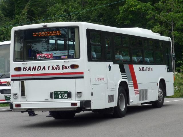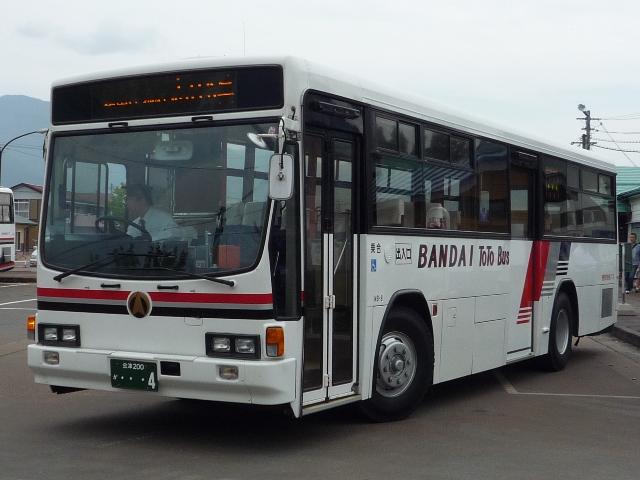 9月の会津訪問で見た磐梯東都バスの画像よせ集め。今回は大型車を中心に、あわせて 観光路線とも生活路線ともいえる乗車記録などもまじえていければと。 社番:NB-5※.福島200か609。 引き続き、車体表記を社番としていますが、実際に社番として使用しているか確証がありま せん。あらかじめ御了承願います。 磐梯東都バスの名物?西工LV。ボディメーカーは内装次第、とりあえずいすゞが絶対条件 ということなんでしょうか。こちらの行先表示機も中型車同様LEDとなっており、側面は無理 矢理な気も・・・。この日は後述する磐梯山号の運行にあわせ、磐梯高原駅と五色沼とを結ぶ 臨時バスとして活躍していました。猪苗代へはこれを見に来た感もあり、時間の関係で乗車 は叶いませんでしたが、とりあえず撮影出来て良かったと心から思いました。 NB-8.会津200か4。 大型車ではキュービックも登場。なかなか趣き深い仕様の移籍車です。パッと見、KKKか と思ってしまいました(細かく見ると全然違うんですが)。 NB-10.会津200か25。 定期観光バス「ぐるっと磐梯山号」で使用される大型貸切車。見たままの東都観光バスから のグループ間転籍車。7Mボディの同型車は東都観光バスでは珍しく(失礼)割と高年式な がら代替が進められているようで、最近の中古観光バス市場をにぎわせているようです。 森のくまさん。福島200か468。BXD30(1967年車)※。 ※年式・型式は「静かな湖畔の・・・森のくまさん」『バスラマインターナショナル85号』 (2004),ぽると出版を参照しました。 磐梯東都バスのもう一つの目玉、桧原湖周遊バスで使用されるボンネットバス。北塩原 村の所有で、燃料にはBDFを使用し環境にも配慮しています。桧原湖周遊バスは、例 年春から秋にかけて運行されています。運行日等は公式HPで御確認願います。 さて、今年はいろいろと出かけてはバスの写真を撮っていますが 一応小生のスタンスとして、 1.出かけたからにはバスにも乗る 2.乗るからには出来る限り終点まで乗車する 3.回数券など記念となるようなものも購入 を心がけています。ということで、今回の会津訪問では「猪苗代駅」から「喜多方駅」まで 磐梯東都バスを乗り通して会津乗合自動車を巡ることにしました。時間によっては通しの 運行もあるのですが、せっかくなので磐梯高原駅で乗り換えることにしました。 磐梯高原駅には立派な待合室があり、小生が訪ねた時間は丁度「森のくまさん」も運行の 合間で留め置かれていました。バスにさして興味があるとは思えない観光客の方々も、珍 しいボンネットバスということでバスの前に立ち記念撮影している風景もチラホラと見ること が出来ました。やはりボンネットバスというのはインパクトがあるようです。 小生のスタンスその2の「終点まで乗り通す」ですが、大概「何しに来たんですか?」と運転 手さんから聞かれることの多い、折り返し場があるだけの何も無い集落の外れが多く、やっ ちまったと強く思うこともしばしば。今回は1時間以上待ち合わせ時間があることと、終点ま で乗り通すと乗り継げないこともあり、磐梯高原駅で下車することにしました。さすがに観光 地ということもあって、何も無いということはなく、裏磐梯物産館という村営の休憩施設がバ ス停前にあります。 裏磐梯物産館では食事も出来ますし、トイレも綺麗。特産品なども販売しており、時間を有効 に使うことが出来ました。磐梯東都バスで乗り継ぎの旅に出ようとお考えの方がいらっしゃい ましたら、裏磐梯高原駅をお勧めします。ここから喜多方駅まで約1時間、もう一山越えて北 塩原村を横断していきます。訪問時、裏磐梯まではそこそこの乗車がありましたが、乗り継い だのは2人、喜多方まで乗り通したのは小生だけでした。さらに言えばラビスパ裏磐梯から先 の乗客は小生のみと、祝日ということもあってか利用は少なく残念な結果でした。 PR