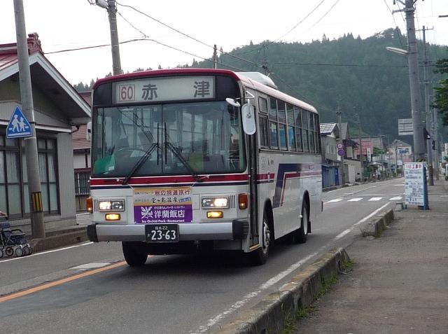 -注意- このエントリ記事は2008年10月に書いたものです。2009年4月より郡山側の路線は 変更されています(詳細については「別エントリ」参照)。あくまでも当エントリは2008年 10月の体験談としてご覧いただくようお願いいたします。 会津バスこと会津乗合自動車は、福島県の会津地方をメインとしていますが、中通りの 郡山市内にも一般路線バスを運行しています。 福島22か2363.郡山市湖南町福良古町停留所近辺で撮影。 郡山市湖南町、郡山市ではありますが地名の通り猪苗代湖南岸に位置するこの地区の 路線バスを会津バス湖南営業所が運行しています。管内の時刻表を見ると分かるので すが、路線の殆どは地区内で完結しているものが多く、会津バスで湖南町へ行くには、 磐越西線の上戸からの路線が唯一と言ってもよいアクセス方法ではないかと思います。 もっとも湖南への一般的なアクセス方法はおそらく自家用車でしょうが・・・。 上戸発着の本数もけして多くなく、小生のようなおかしなマニアの流入を阻む難易度の高 さとなっています。 そんな湖南営業所の会津バスですが、1往復のみ会津若松と郡山駅から湖南町まで結 ぶ路線バスがそれぞれあります。会津若松からは、会津若松市内の「原長谷川前」まで 運行している原・長谷川線のうち、1本のみが湖南地区の「湖南高校」まで結んでいます。 小生が会津在住時代の2000年頃は湖南地区への足として、ある程度の本数を福良古 町まで運行していましたので、1往復となったことにむしろ寂しさを感じます。 ちなみに湖南高校から会津若松への復路は16時台の下校時に運行されますが、「学校 の終業時間により繰上げ運行する場合運休」と注意書きがあります。これでは一般客とし ては時間が読めず、なかなか利用し難いものです。つまりこの路線には学生以外の利用 が無いということが分かります。 今回の会津訪問では、その朝1本に乗車してみました。この馬鹿馬鹿しいまでのマニ アぶりが拙ブログならでは。その努力を違うことに使っていれば今頃別の人生を歩んでい たことでしょう。 西若松駅から会津若松駅前ターミナルを経由する「原・長谷川線」の始発が、会津若松 PR