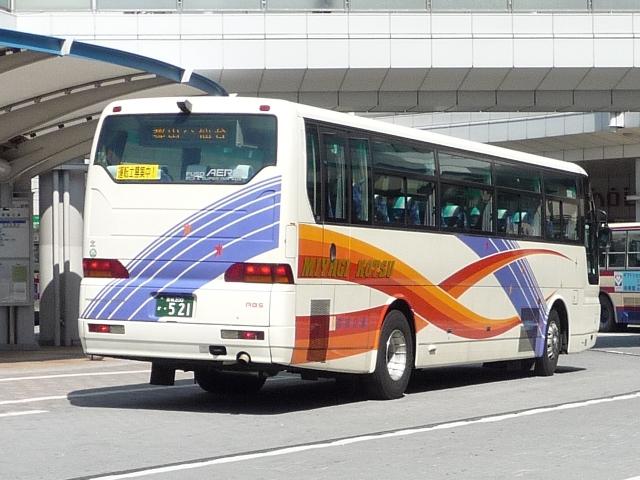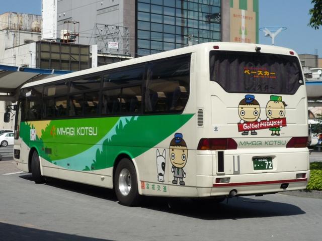 バス(東北地方)というカテゴリーながら、福島県内事業者のみという状況。多少充実させ る意味合いもあり今回はこの内容、宮城交通の高速車画像よせ集めです。とはいえ、福 島県内で記録したもののため、見た目が同じ車両のみですが。 宮城200か66. かつては雑多な車両で運用している感のあった宮城交通ですが、見たところ郡山線に入って いるのはニューエアロが中心。ボディ再生時に塗りなおしたのでしょうか、キャラクターの入っ た現行塗装となっています。 72. やはりキャラクターのついた現行塗装。側面の行先表示板がなんとも。 521. こちらは通称「七夕」カラーのニューエアロ。こちらは側面もLED行先表示があります。 内容の薄ーーーーい、お気楽な更新で申し訳ありません。次回はもう少し頑張ります。 PR