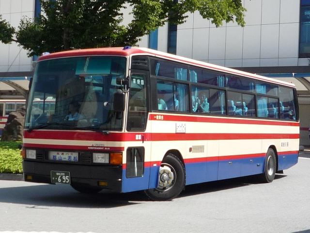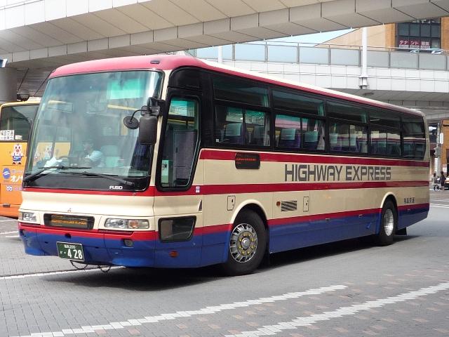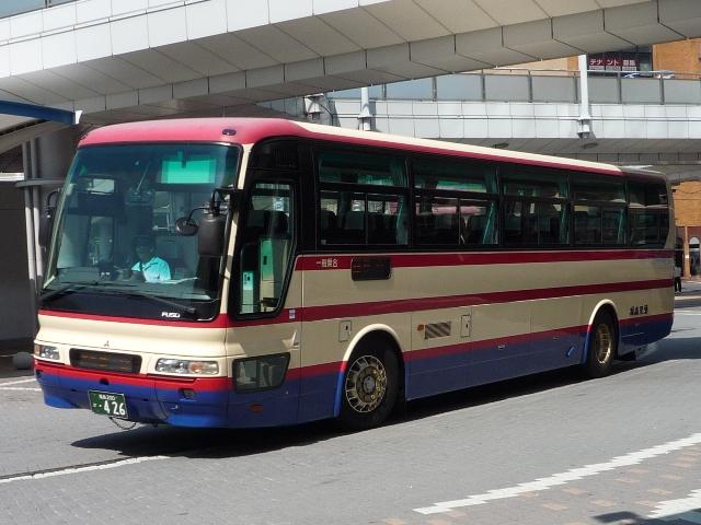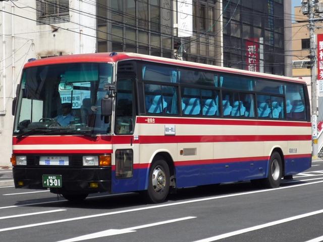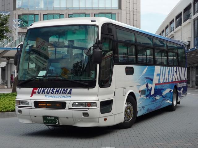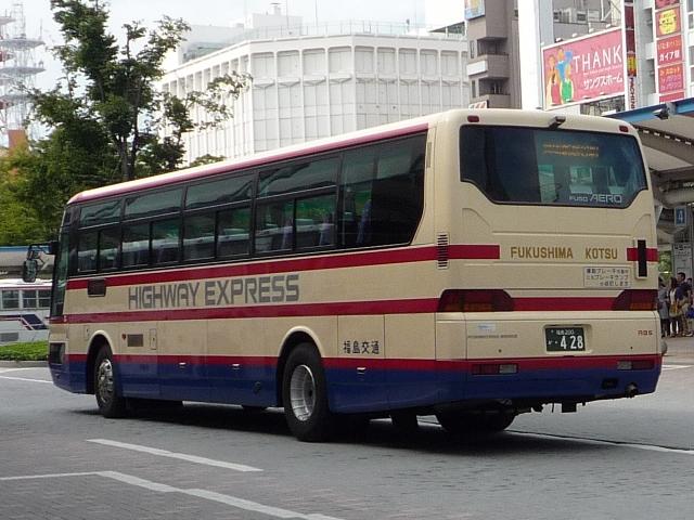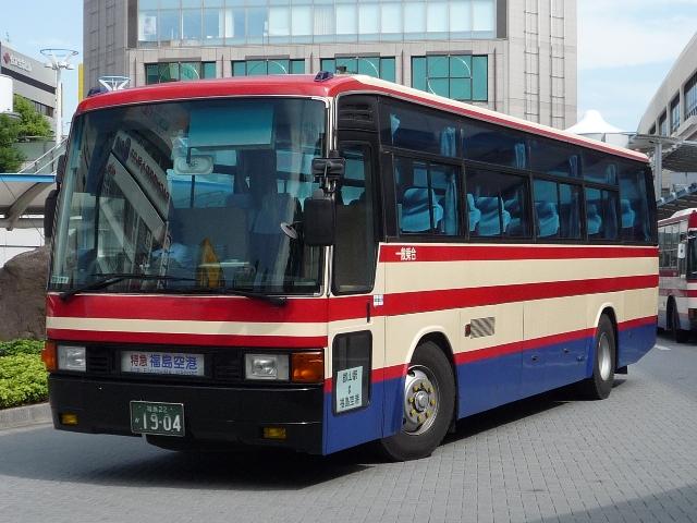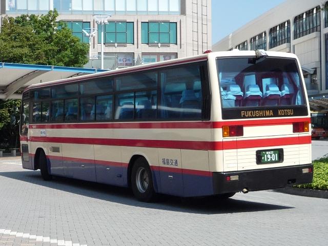 長々と続いている郡山で見たバスシリーズ、ひとまず福島交通編は今回で終了。ラストは 1901.P-MS725S(89年車)。 登場から約20年とさすがに古めかしく感じますが、ボディの状態も良く、福島交通の車 両管理の良さがうかがえます。 1902.P-MS725S(89年車)。 こちらは現在も貸切で使用されるエアロバス。貸切は側面にカラフルなマークがつきます。 1904.P-MS725N(89年車)。 狭隘路用に導入された短尺貸切車ですが、こちらも高速バスに転用されています。福島空 港方面への路線がメインの様子。 426. ここから200ナンバーと一気に間が飛びます。側面にもLED行先表示機を備えていること から新製時からの高速車ではないかと思われます。 428. こちらには側面に「HIGHWAY EXPRESS」の文字が入ったニューエアロの高速車。 福島200あ3. 創業100周年のプレイベントで2004年に一般公募によって制定された高速・貸切新塗装の 高速車。実際に新塗装車が登場したのは2005年で、画像の車両は第一陣の希望ナンバー で導入された1台。ちなみに新塗装は 福島を象徴する「磐梯山」、智恵子抄で知られる「ほんとうの空」、県内を流れる阿武隈川 の「水」といった福島県が誇る豊かな自然をイメージし、躍動感にあふれている。 「バス事業者から届いたNEWS&INFOMATIONワンダフルバスカンパニー」『バスマガジン 8号』(2004),三推社/講談社より引用。 とのこと。まだまだ見かけることが少なく、貴重な存在ではないかと。 PR